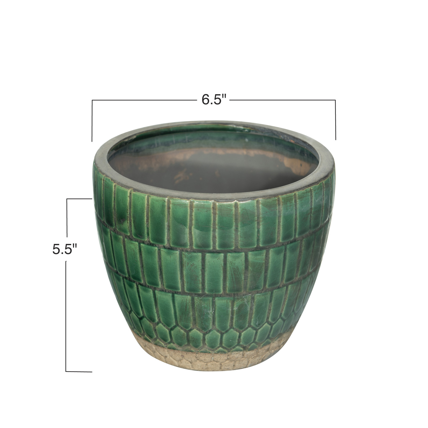 Catalog Name: 6-1/2" Round x 5-1/2"H Terra-cotta Tiled Planter, Green (Holds 5" Pot)