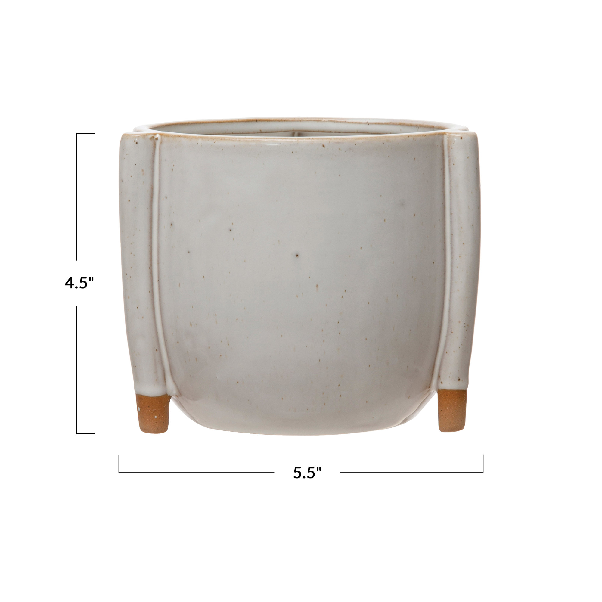 Catalog Name: 5-1/2" Round x 4-1/2"H Stoneware Footed Planter, Reactive Glaze, White (Holds 5" Pot) (Each One Will Vary)