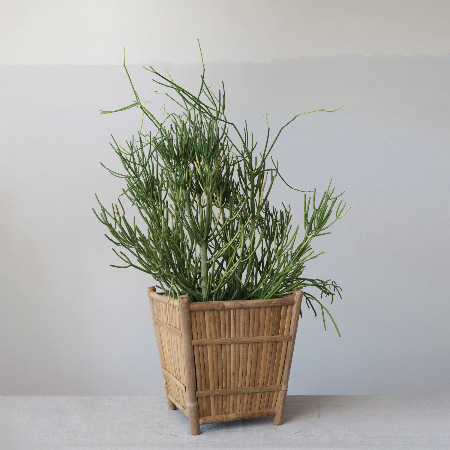 Catalog Name: 17" Square x 18"H Handmade Bamboo Footed Planter w/ Plastic Liner, Natural