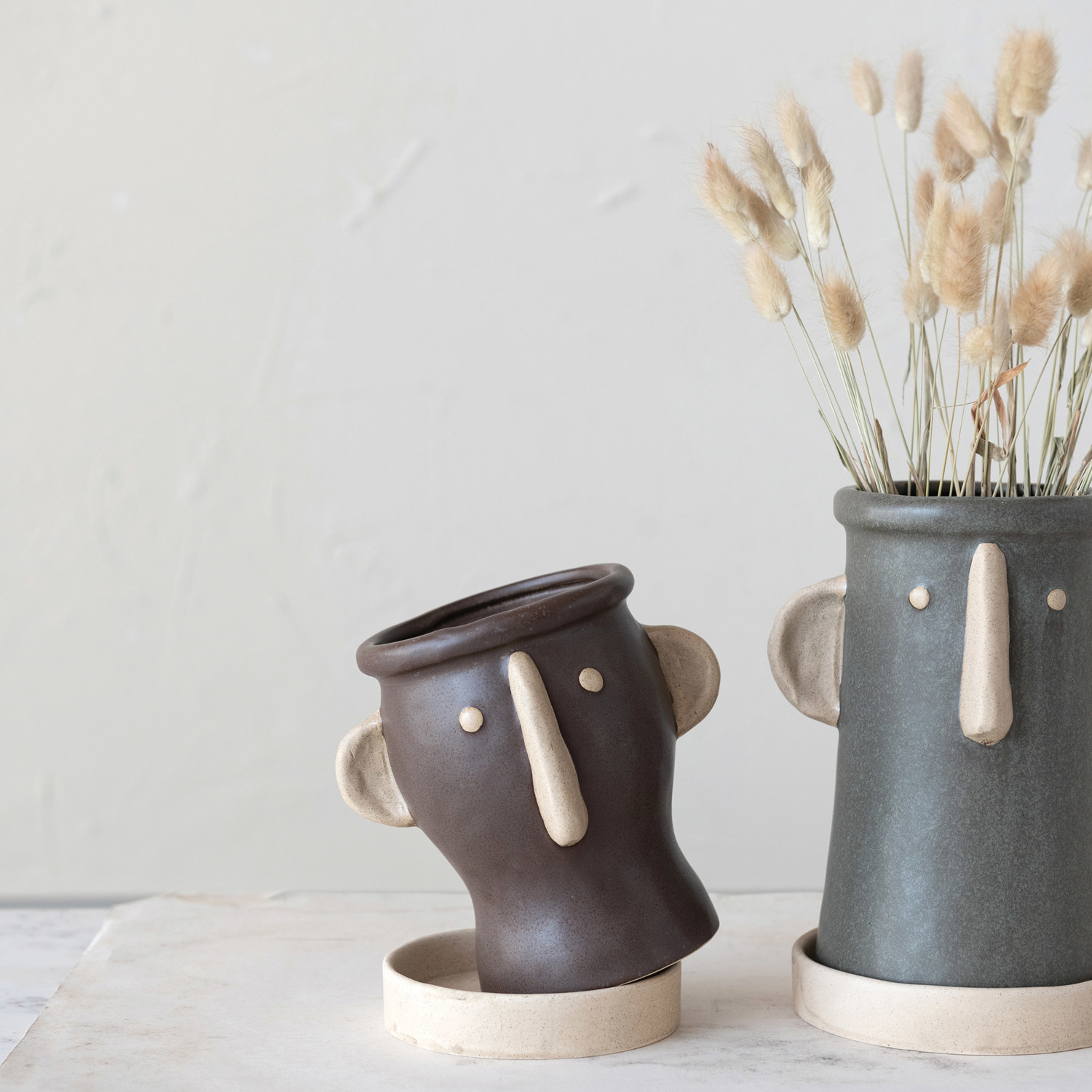Stoneware Face Planter w/ Saucer, Set of 2
