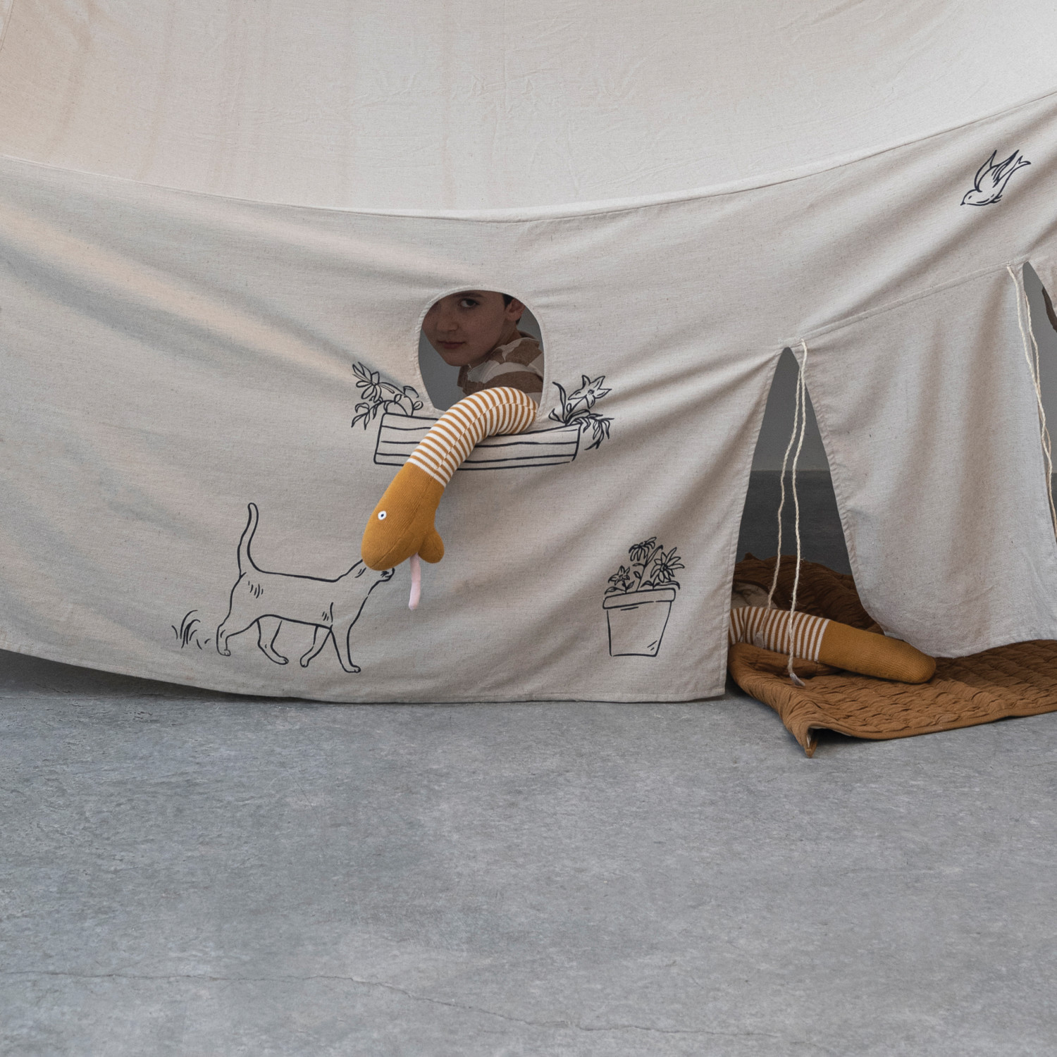 Our thoughtfully curated collection of children's toys and home decor showcases a wide selection designed to serve as the perfect gift for a little one, or whimsical addition to a nursery. Explore a vast selection of items including burp cloths, mobiles, stuffed animals, playful rugs, baby blankets, whimsical pillows, growth charts, wall hangings, stepping stools, poufs, and so much more. Choose from a wide array of materials from soft cotton and corduroy to velvet and wood, and a variety of darling styles. Individualize a child's room or play area with the addition of an artfully crafted piece of decor, designed with little ones in mind. This whimsical cotton tablecloth will transform any space into a playhouse with playful, cottage inspired images on soft cotton. Display in a children's room of any style. Machine Wash Cold, Gentle Cycle, Do Not Bleach, Tumble Dry Low, Warm Iron If Needed. Made from cotton and polyester.