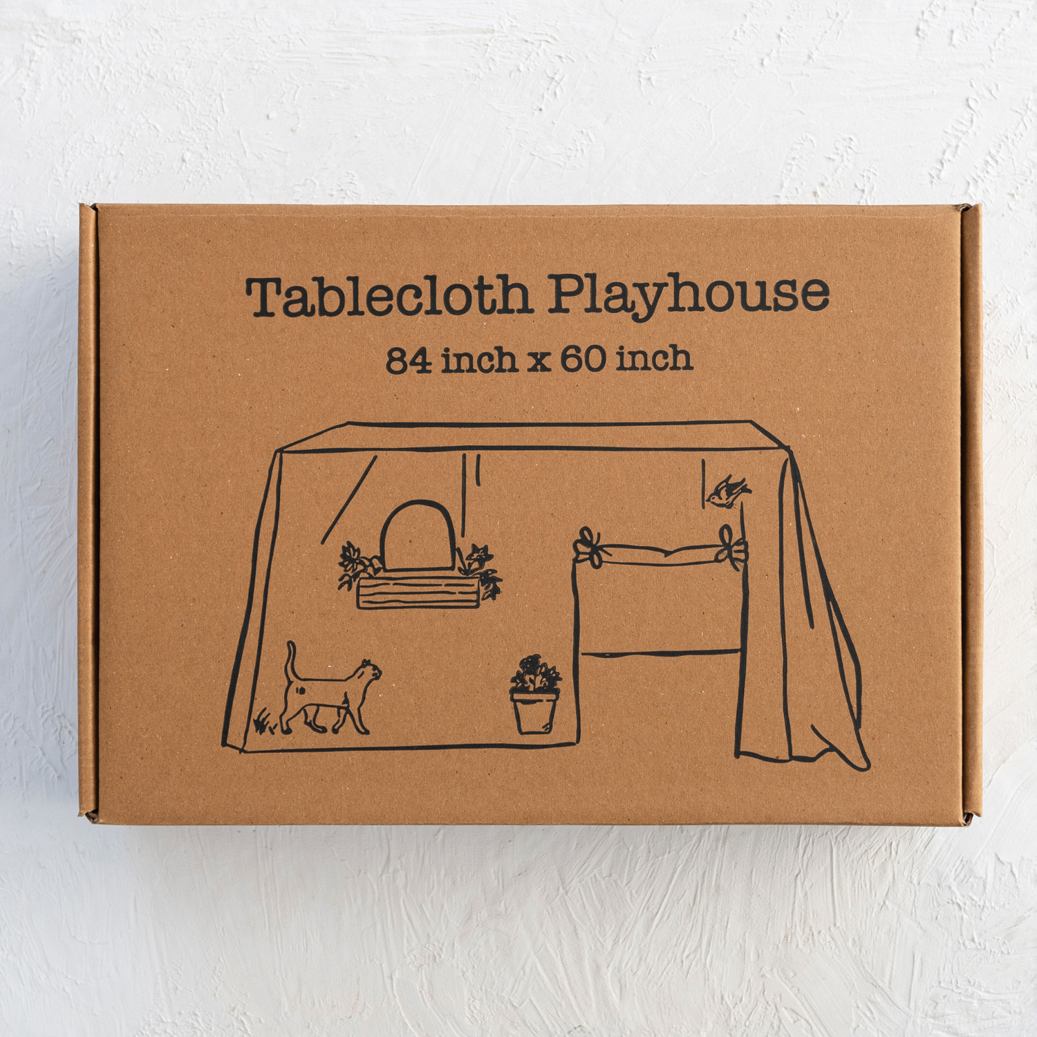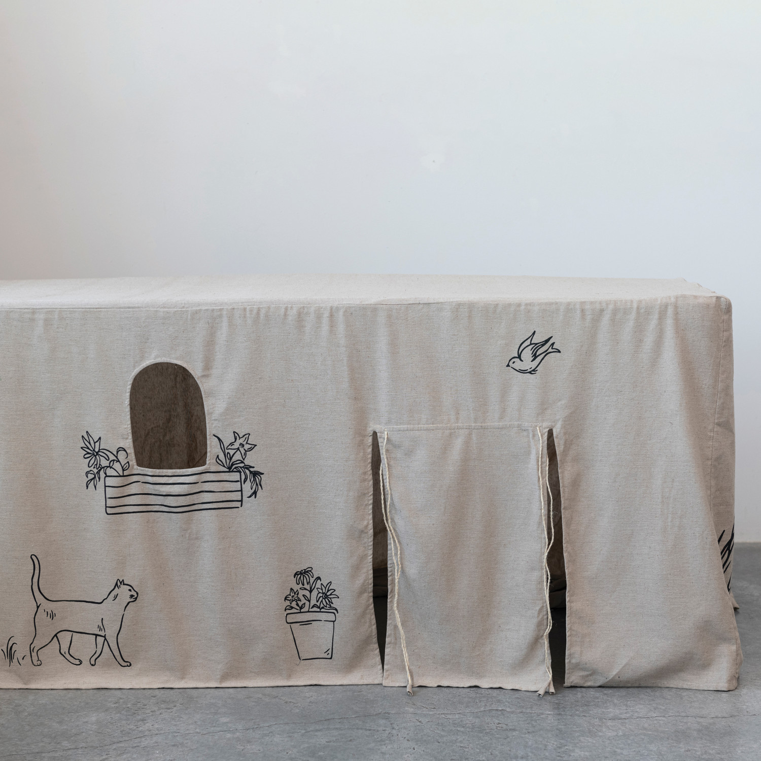 Catalog Name: 72"L x 31"W x 30"H Cotton Chambray Printed Tablecloth/Children's Playhouse w/ Flap Door & Window Cut-Outs