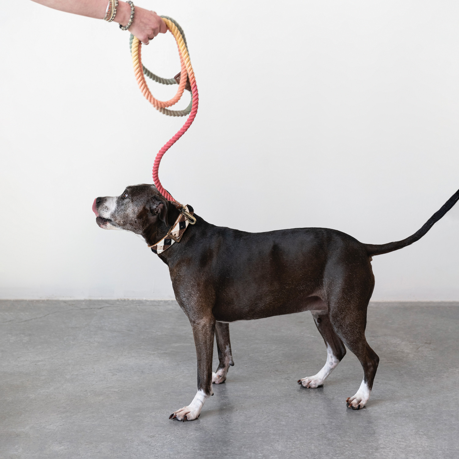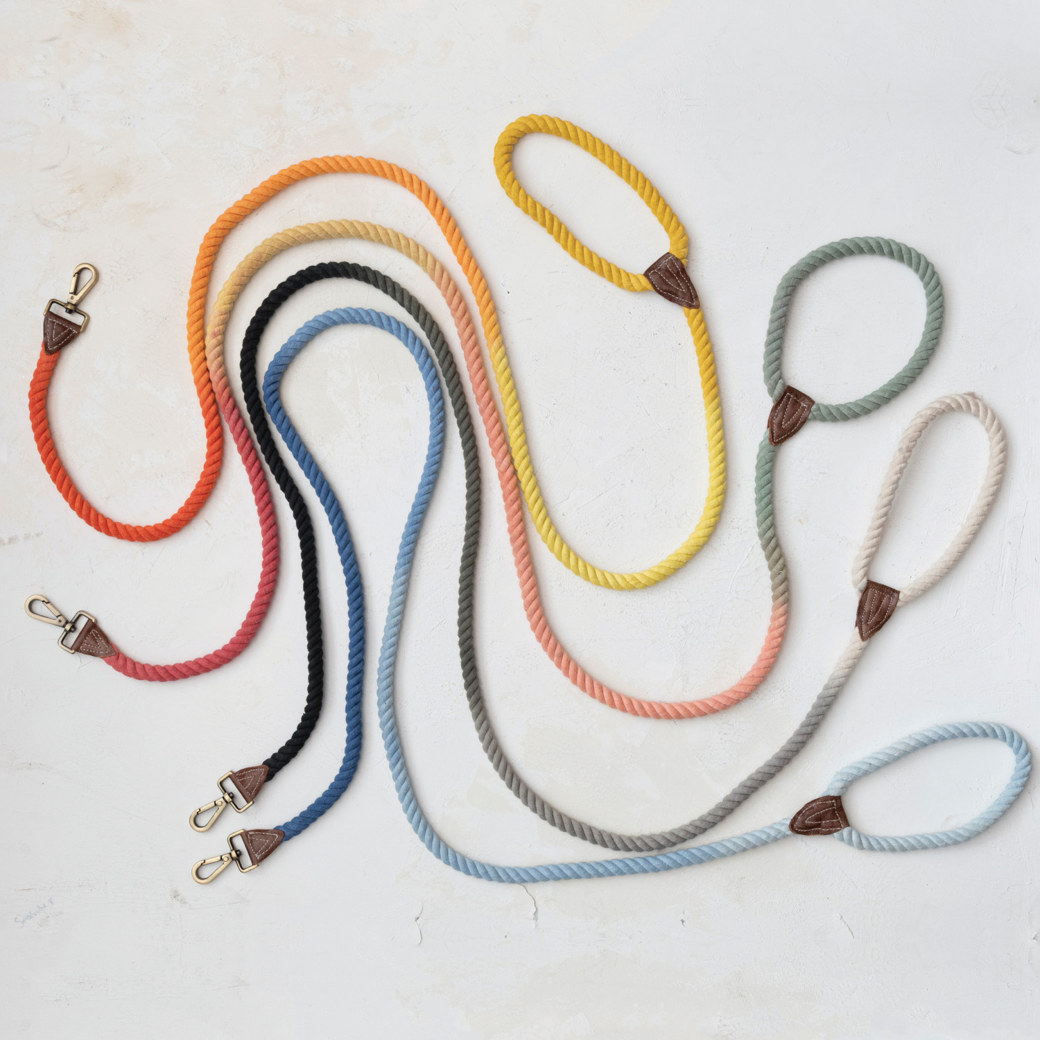 Catalog Name: 6' Braided Cotton Rope & Leather Dog Leash w/ Metal Clasp, Multi Color Ombre, 4 Colors