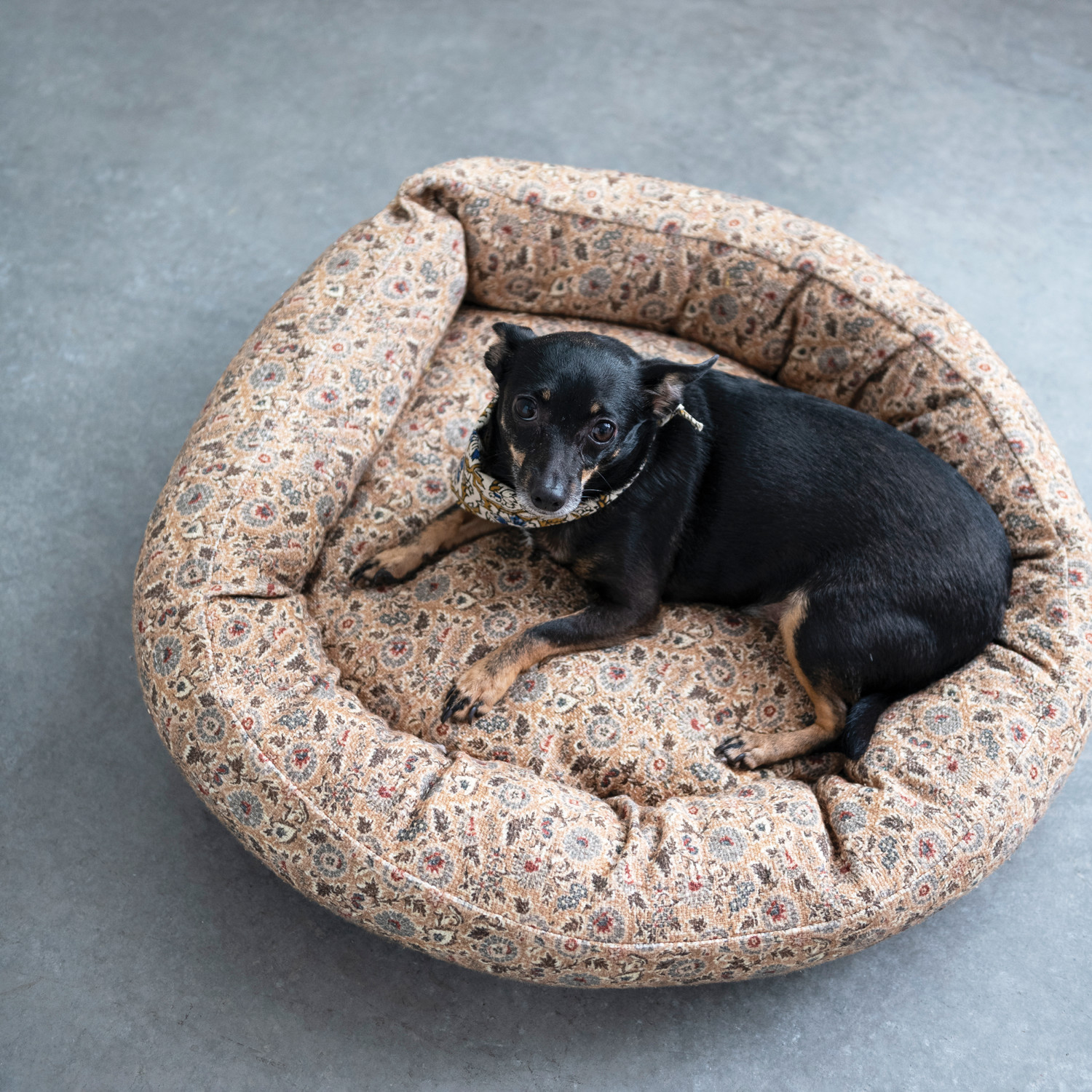 Thoughtfully curate the perfect space for a beloved furry friend with our unique collection of pet accessories. Peruse a vast selection of playfully unique, display-worthy pieces designed to individualize an animal or animal lover's space, including treat canisters, dog and cat beds, food and water bowls, dish mats, woven leashes, colorful bandanas, wall art, and so much more. Choose from a wide array of materials from solid wood and woven cotton to stoneware and iron, and styles from classic farmhouse and mid-century modern to vintage glam and contemporary boho. Create a customized arrangement of whimsical accents full of color and texture. This elegant pet bed showcases a delicate floral pattern on soft, durable cotton. Display in a bedroom or living space of any style from farmhouse to global. Machine Wash Warm or Hand Wash. Made from cotton.