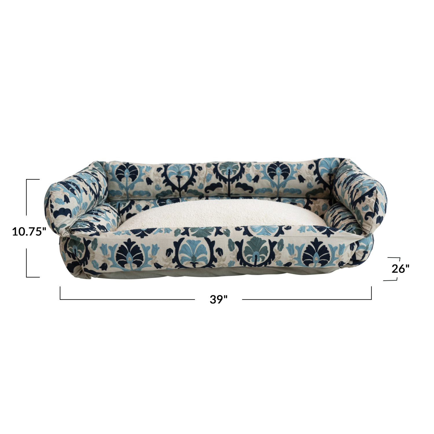 Catalog Name: 39"L x 26"W x 10-3/4"H Cotton Embroidered & Sherpa Pet Bed w/ Pattern & Washable Cover, Natural, Blue & Grey