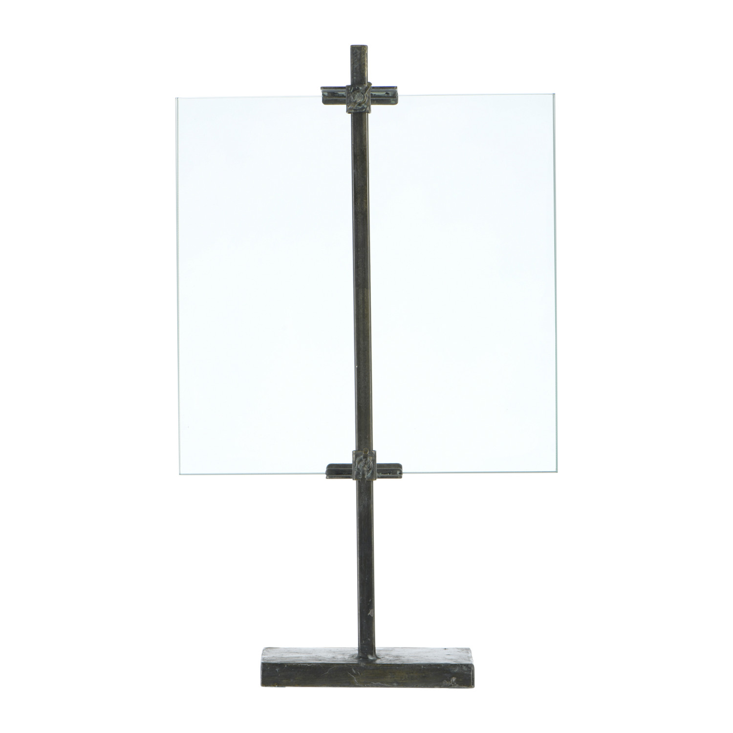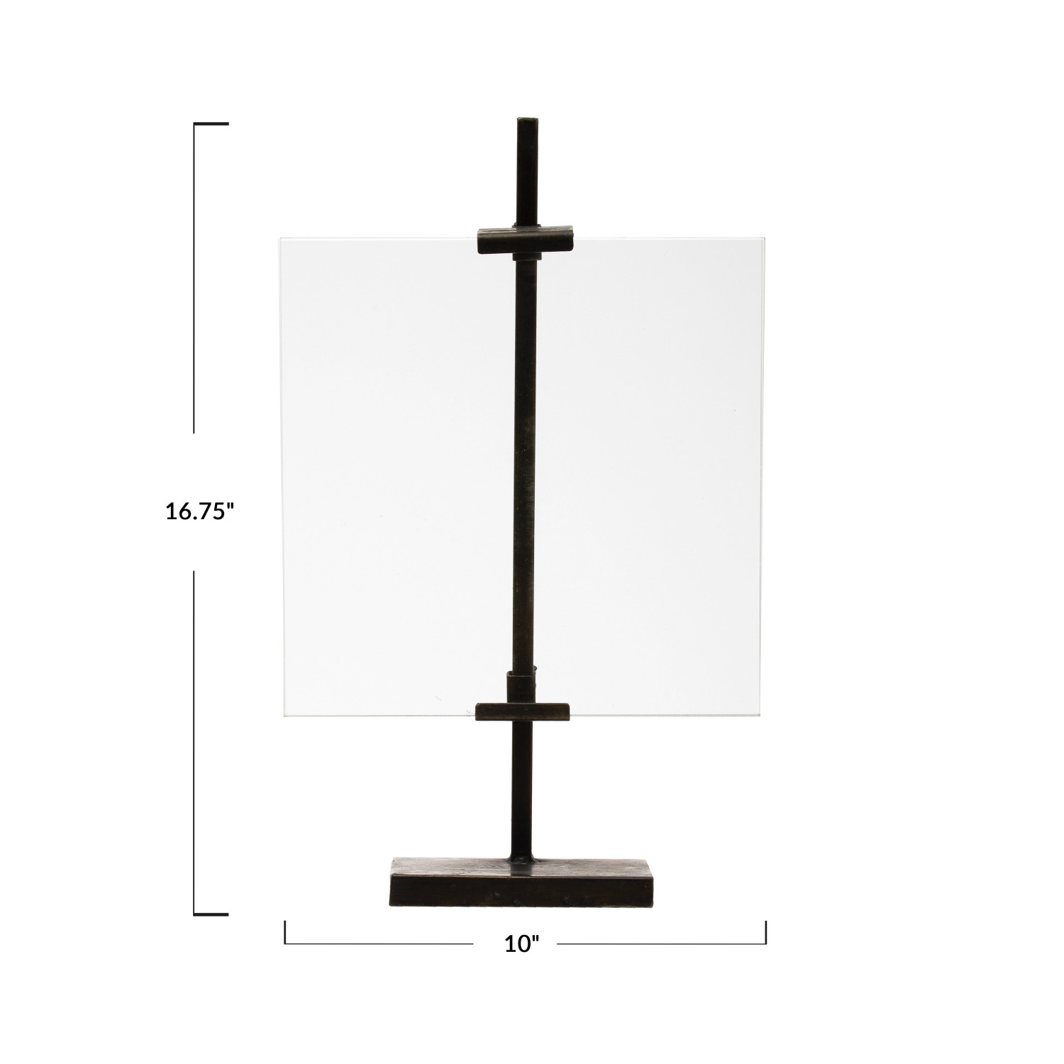 Catalog Name: 10"L x 16-3/4"H Metal & Glass Floating Photo Frame w/ Stand & Adjustable Clamps, Black (Holds 8" x 10" Photo)