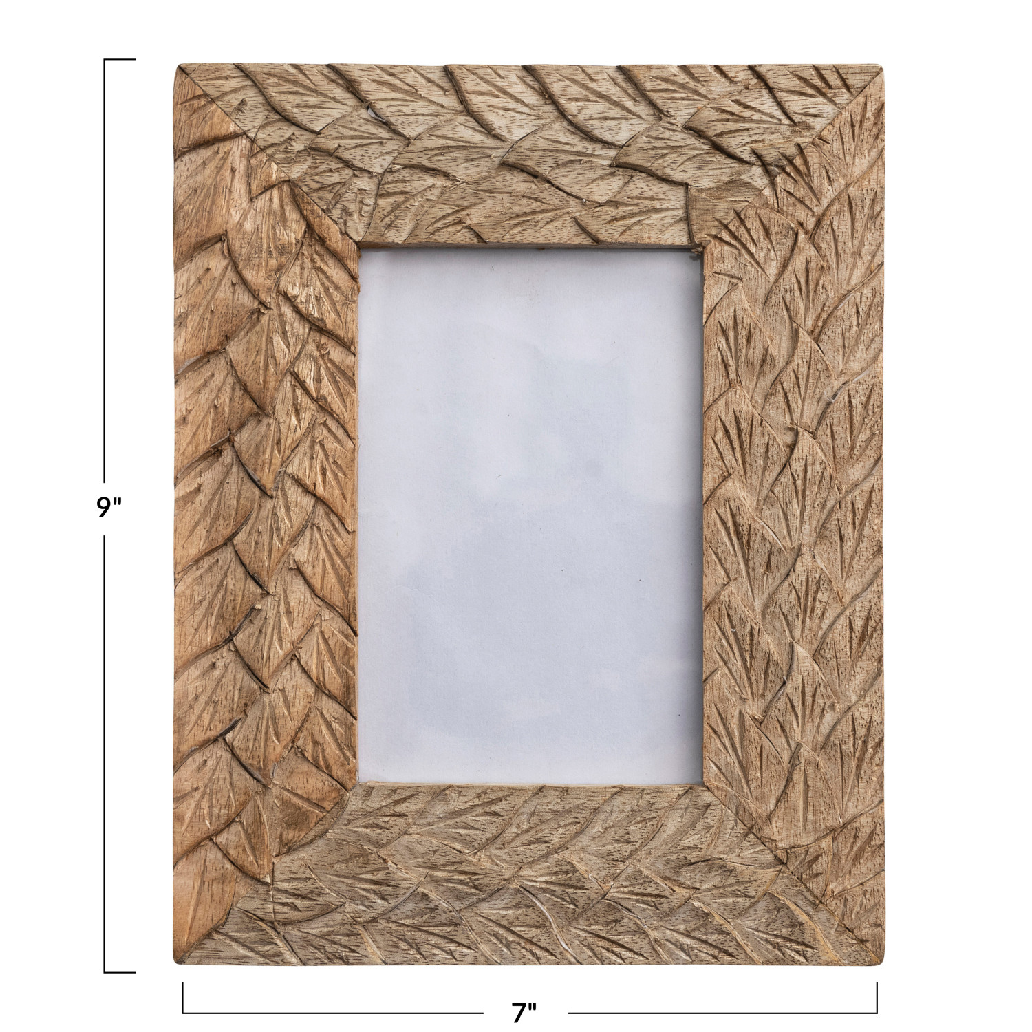 Catalog Name: 7"L x 9"H Hand-Carved Mango Wood & Glass Photo Frame, Natural (Holds 4" x 6" Photo)