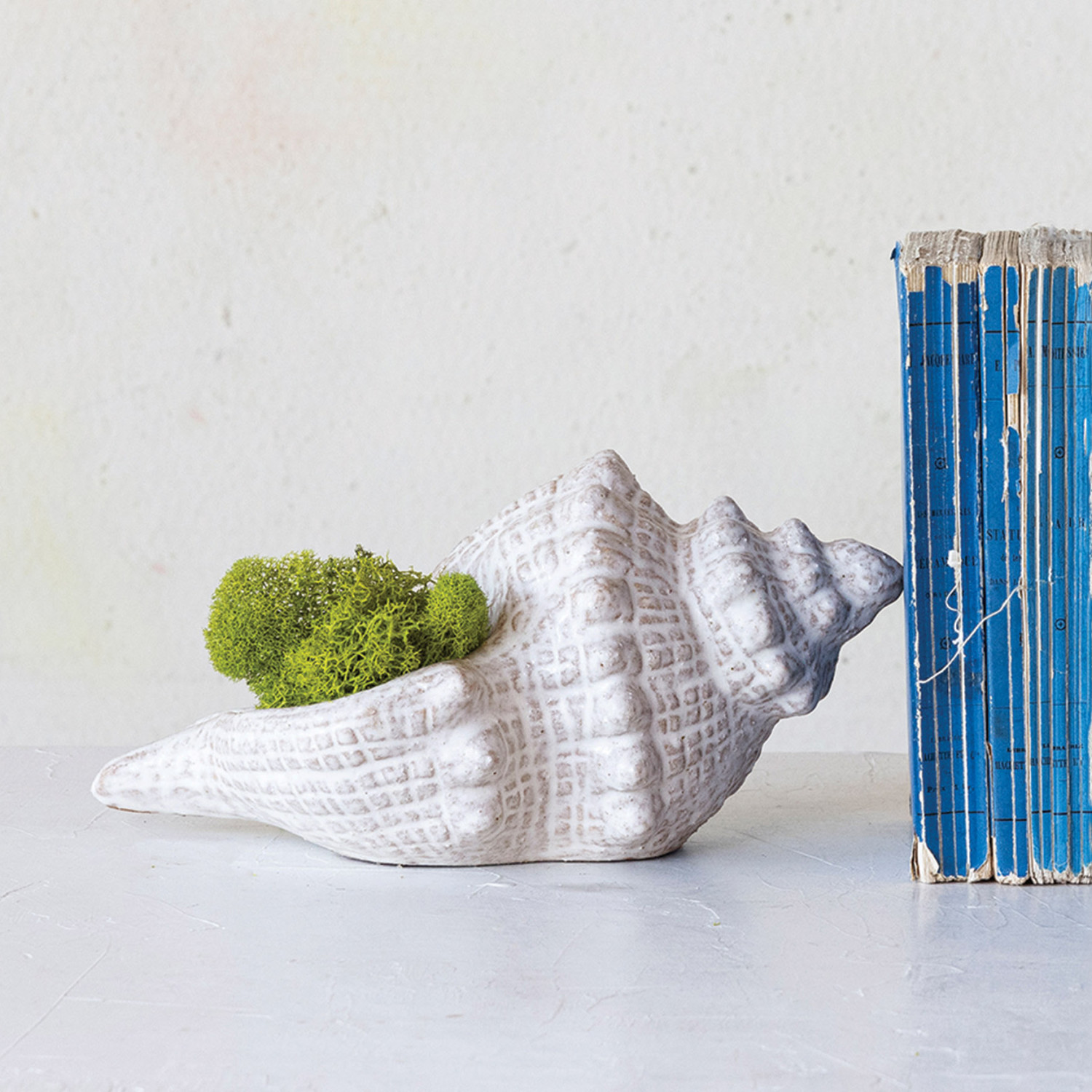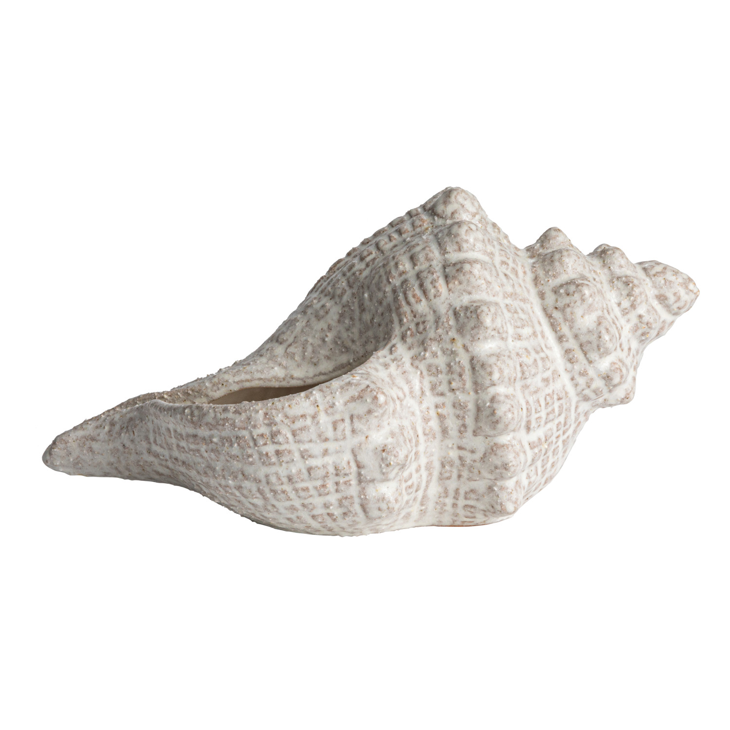 Bring the charm of the ocean to any home with this stoneware conch shell accent decor. This exquisite piece features a realistic conch shell shape with intricate details and textures. The glossy white finish adds a touch of elegance and sophistication to this coastal-inspired decor. Create a nautical theme or just add some seaside flair, this stoneware conch shell will enhance any space with its beauty and style. It can be displayed on a shelf, table, or mantel, or used as a centerpiece or a vase for some favorite flowers. This accent decor is made of high-quality stoneware that is durable and easy to clean. This stoneware conch shell accent decor is a must-have for anyone who loves the sea and its wonders.