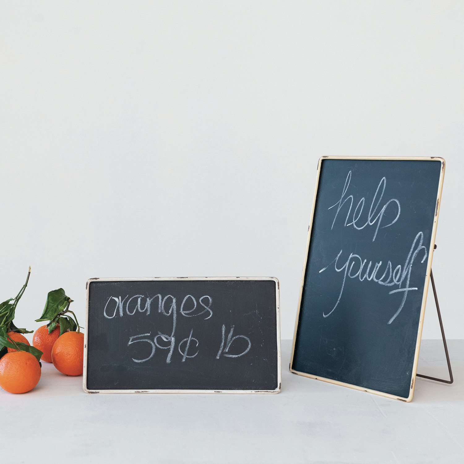 Catalog Name: 10"W x 6"H Metal Framed Chalkboard w/ Easel, Distressed Finish, White