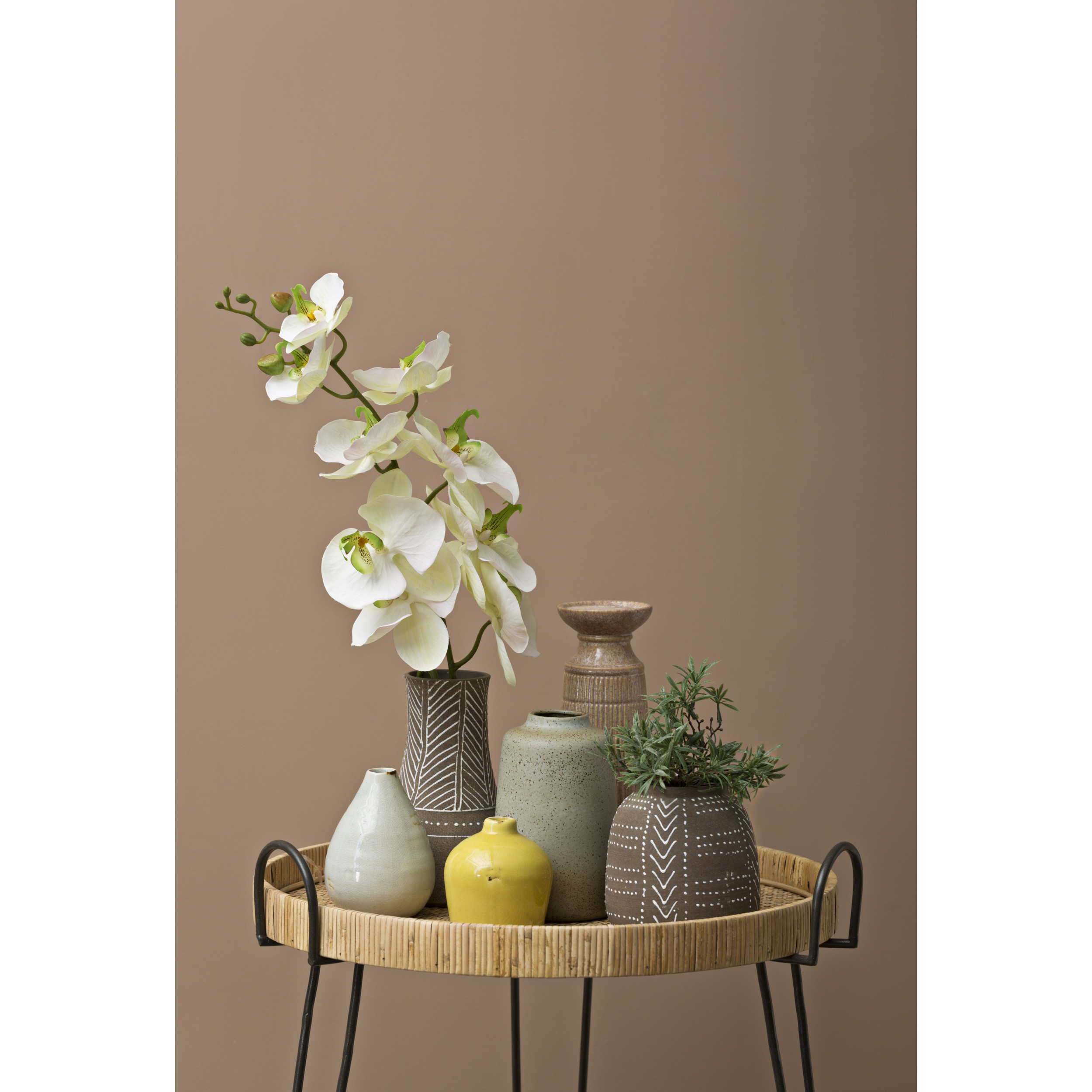 Each of the four terracotta vases comes in a different shape and size. They can be used in a grouping lined up next to each other or placed in different sections of the same shelving unit. Another option is to place one on a table, one on the fireplace mantel and one on a shelf creating a repeat effect throughout the room decor.