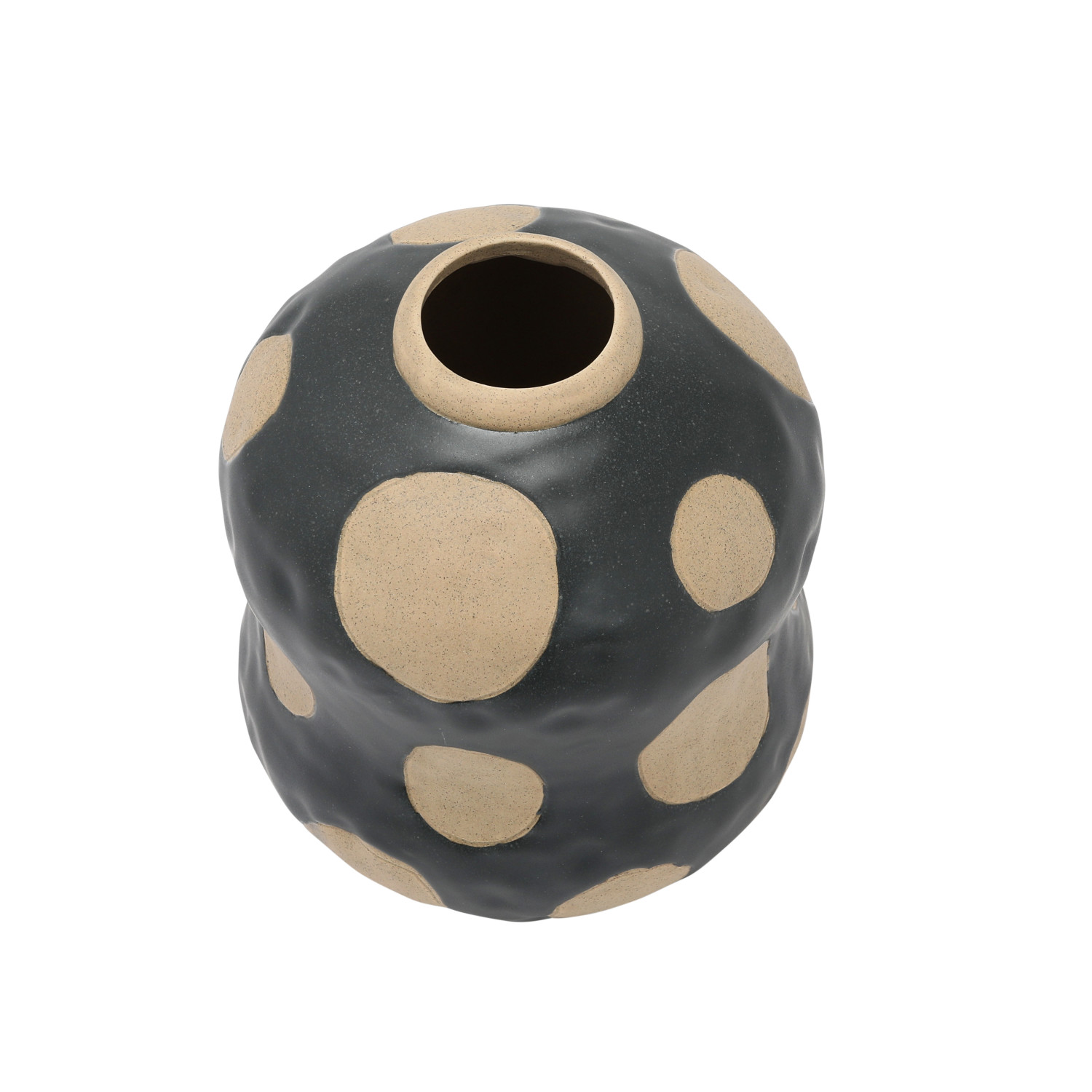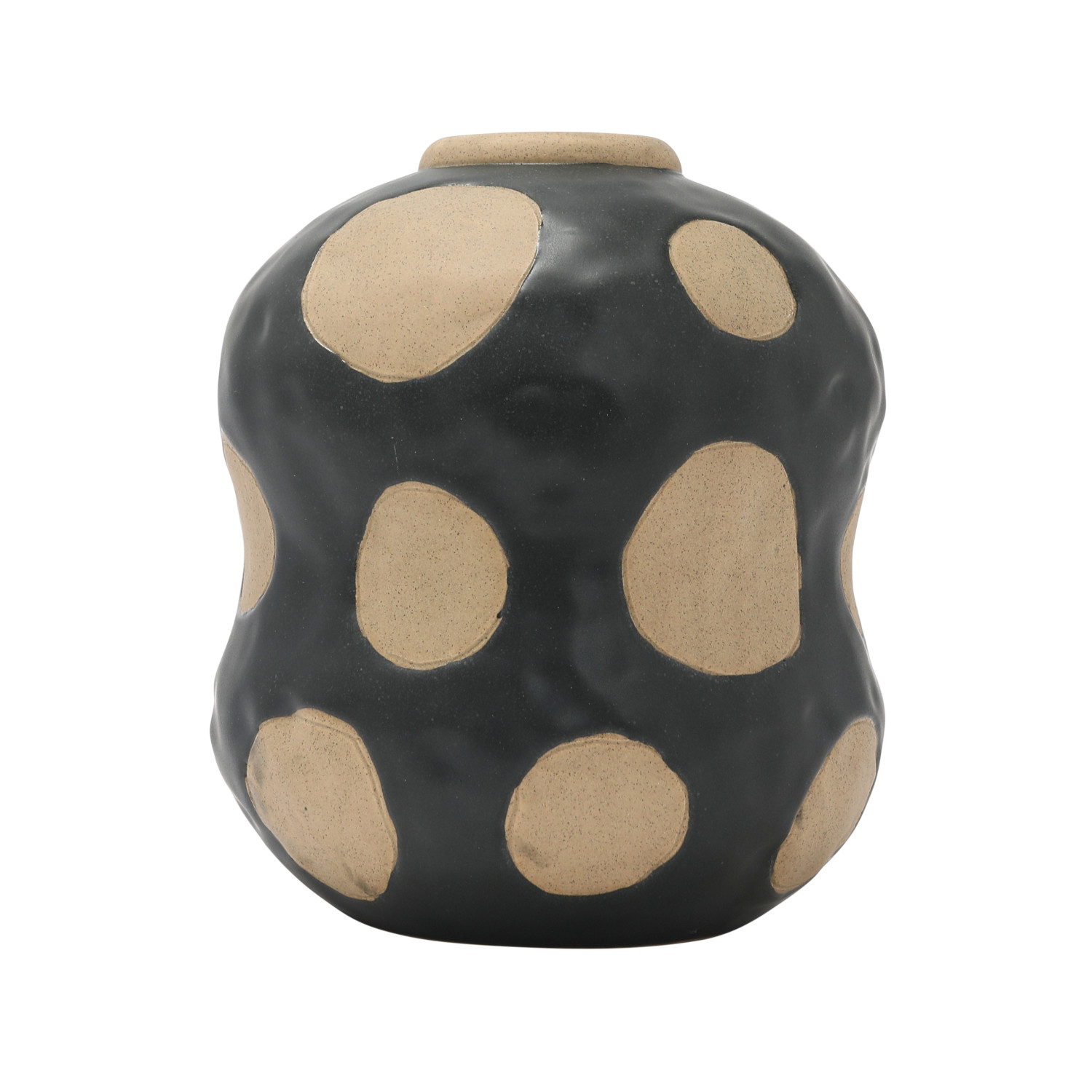 Catalog Name: 6-3/4" Round x 8"H Stoneware Vase w/ Wax Relief Dots, Matte Black & Cream Color