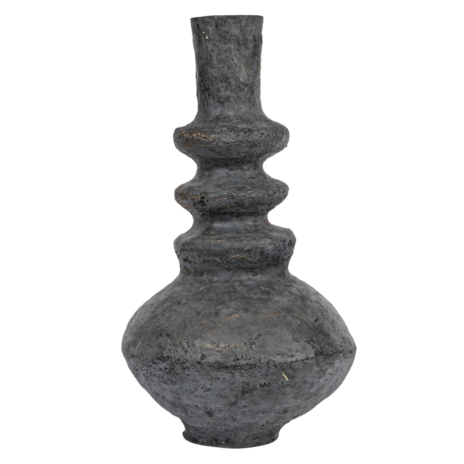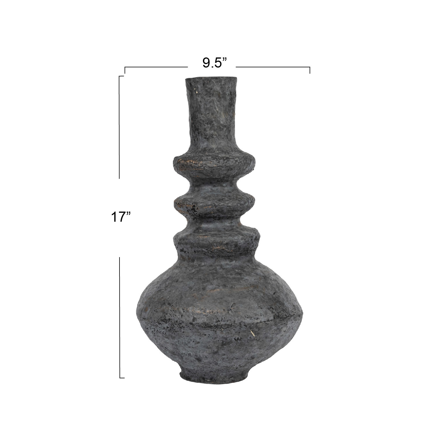These collections of decorative storage and accents available offer the potential to elevate any home or office space while providing practical storage solutions. From rustic figurines and hanging shelves to modern baskets and whimsical boxes, a diverse range of designs awaits every choice. Discover an array of decorative accents, including pillows, vases, sculptures, and more, that will infuse every room with personality and charm. Effortlessly mix and match these items to curate a uniquely owned style or opt for a coordinated set to achieve a harmonious aesthetic. Rest assured, these products exemplify exceptional quality, durability, and aesthetic appeal. This handmade paper Mache vase features a black and gold color scheme that catches the eye, and a distinctive design that sets it apart from others. This vase varied in size and complements contemporary and modern styles perfectly. It can also be showcased as a standalone decorative piece in a study, office, or living room, bringing an artistic flair to the surroundings. Made from 100% Paper Mache.