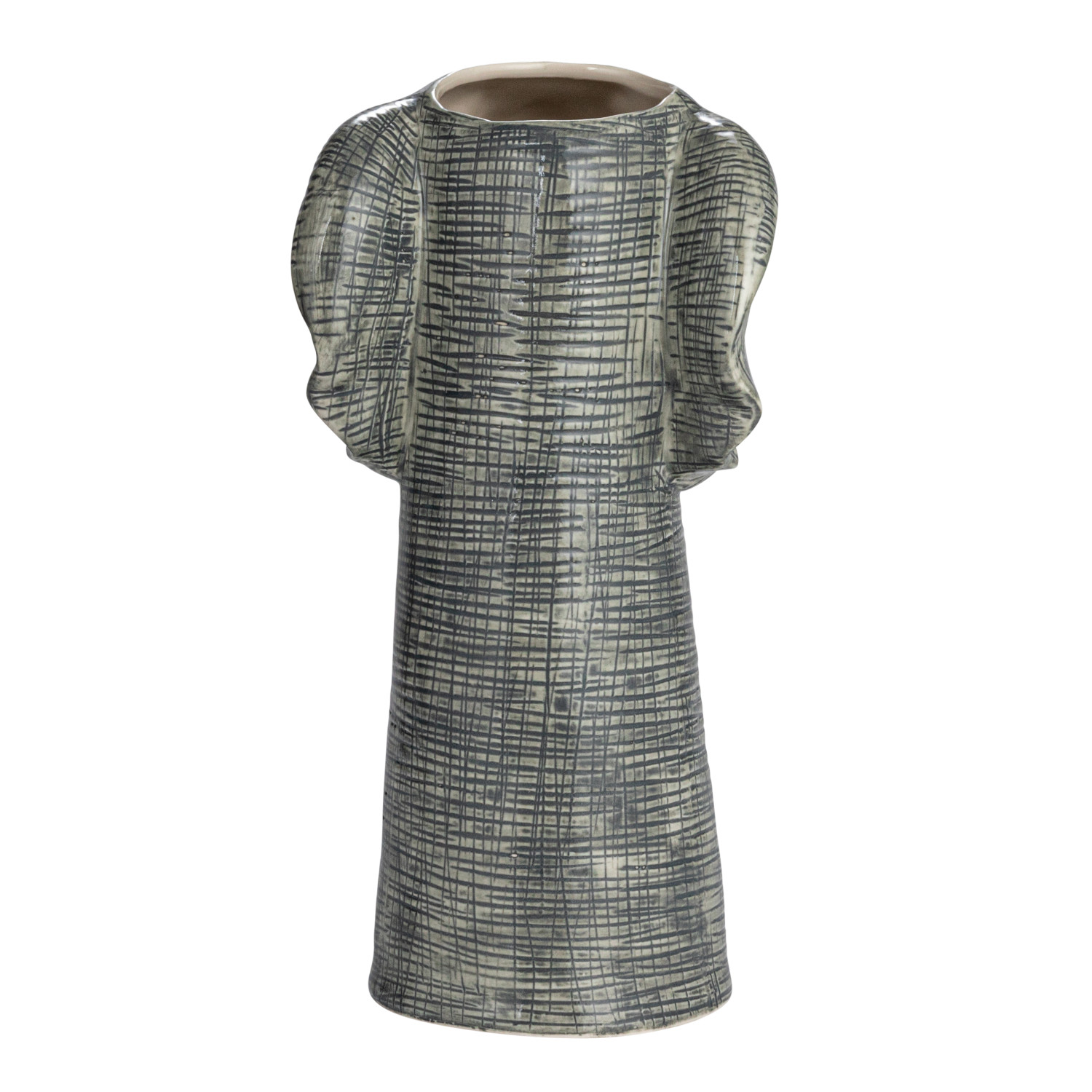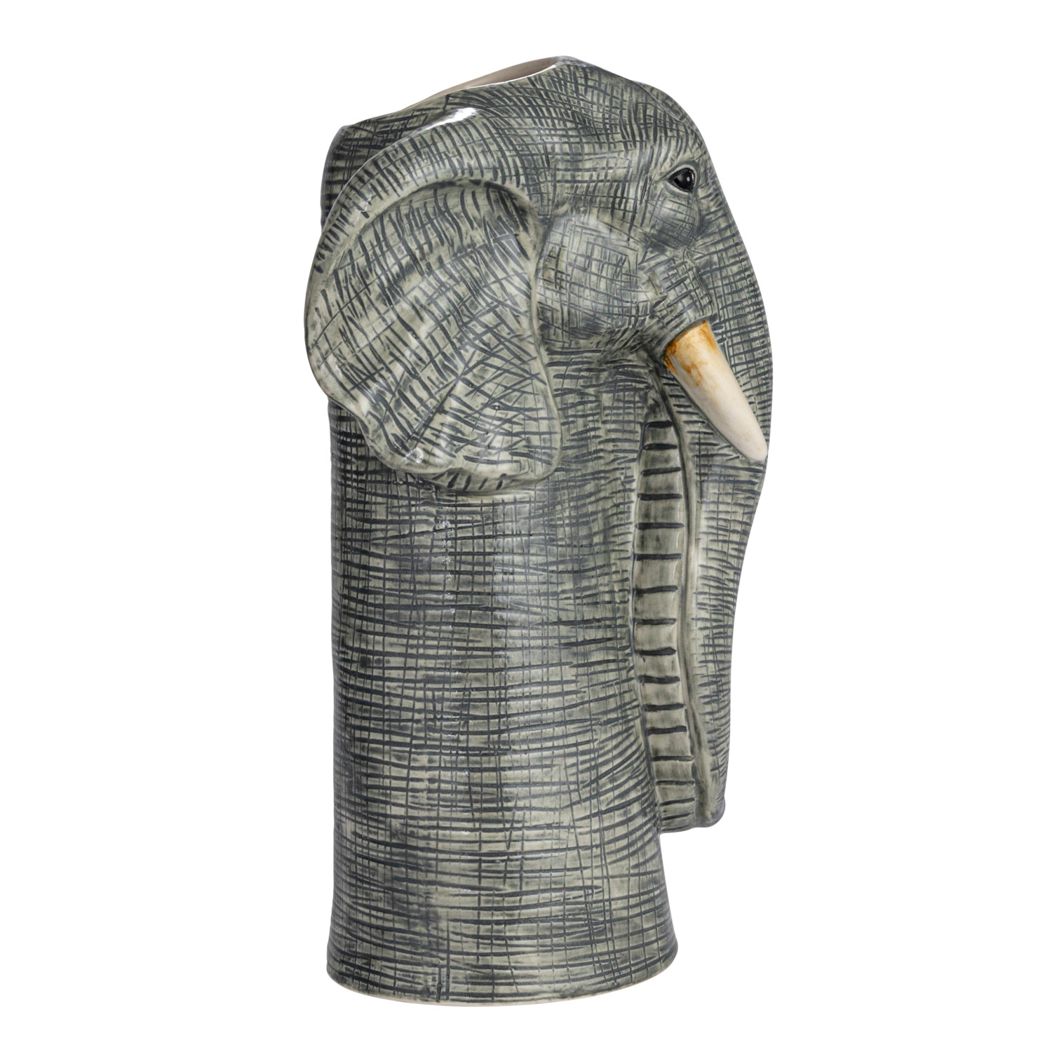 Catalog Name: 5-3/4"L x 5-1/2"W x 11"H Hand-Painted Stoneware Elephant Vase, Grey & White