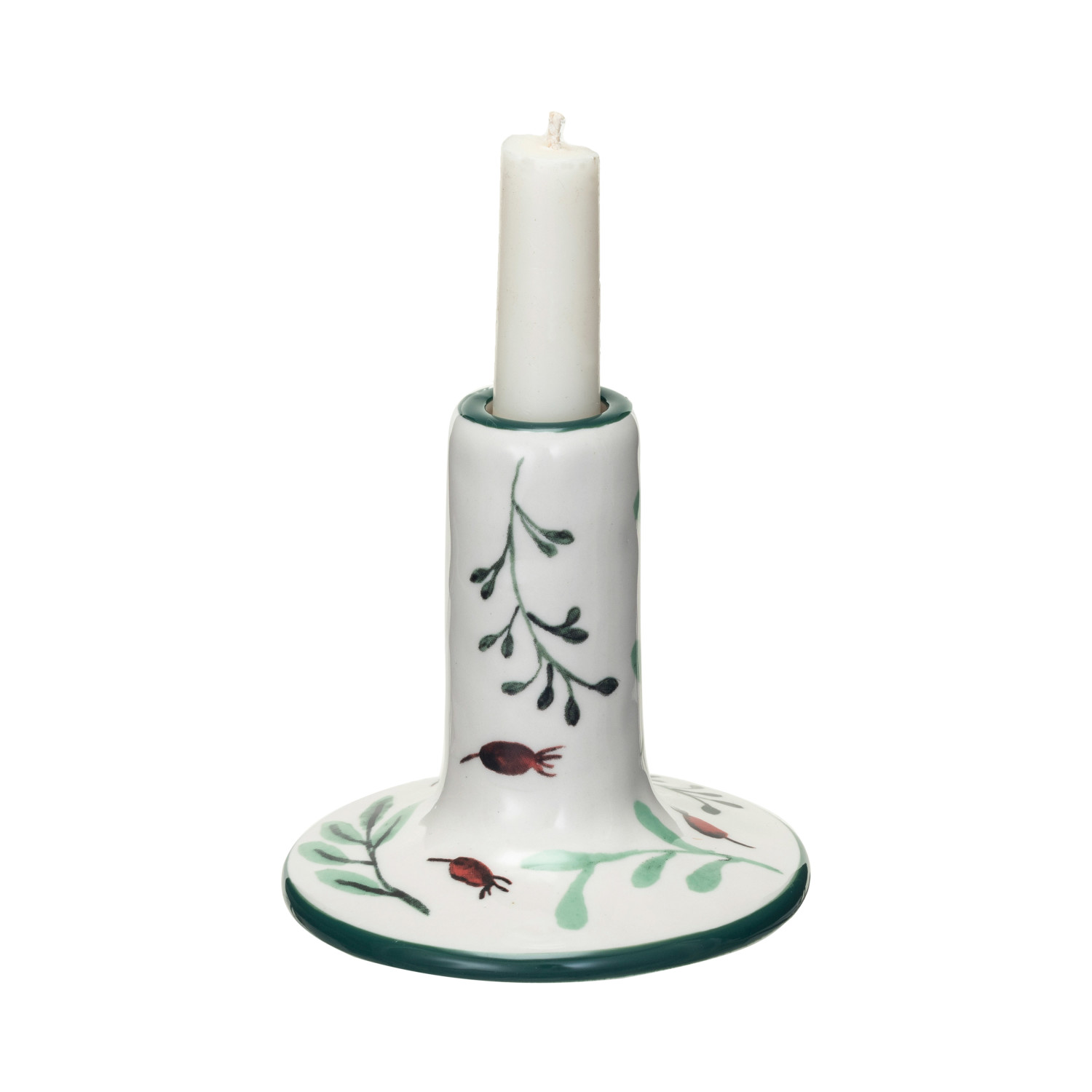Hand-Painted Stoneware Taper Holder w/ Seasonal Botanicals, White, Red & Green