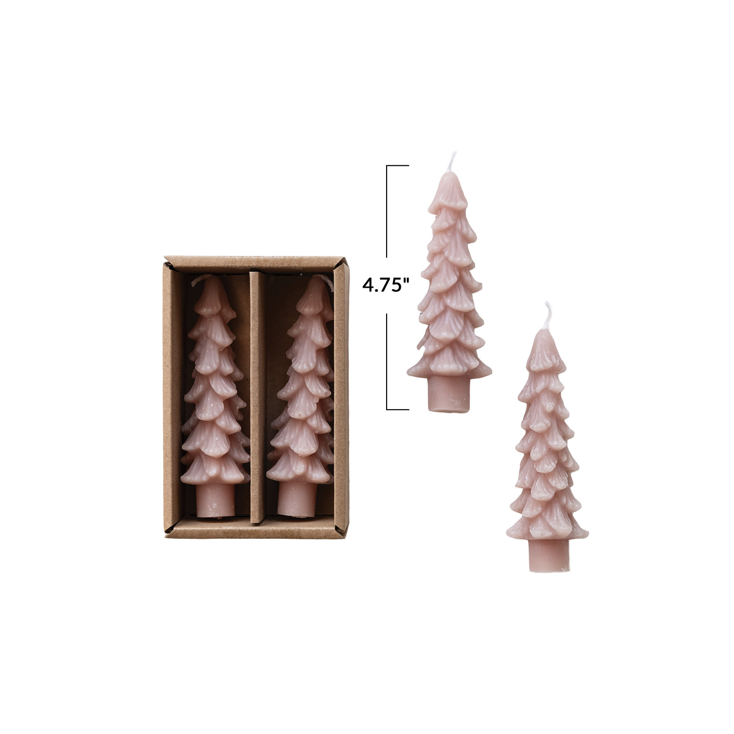 Catalog Name: 4-3/4"H Unscented Tree Shaped Taper Candles in Box, Blush Color, Set of 2 (Approximate Burn Time 3 Hours)