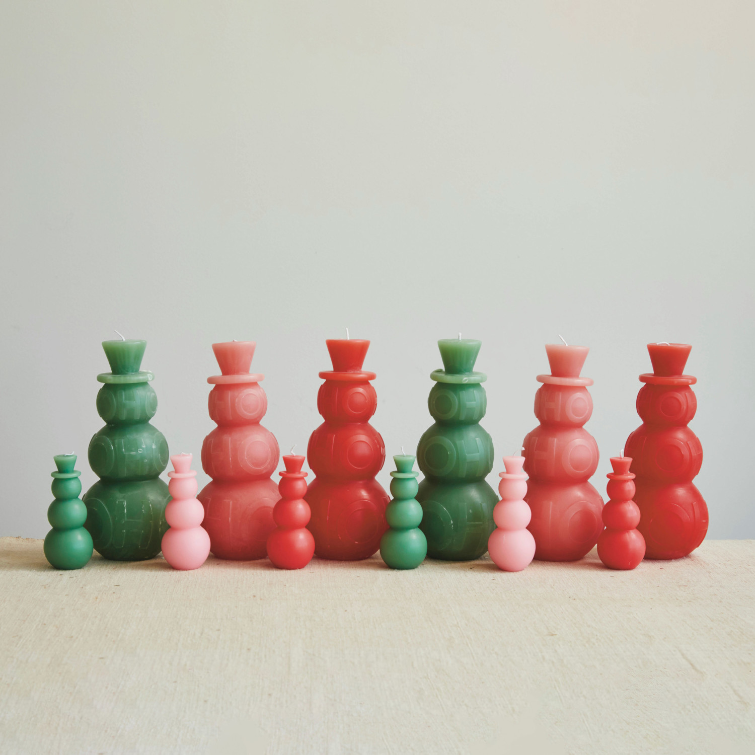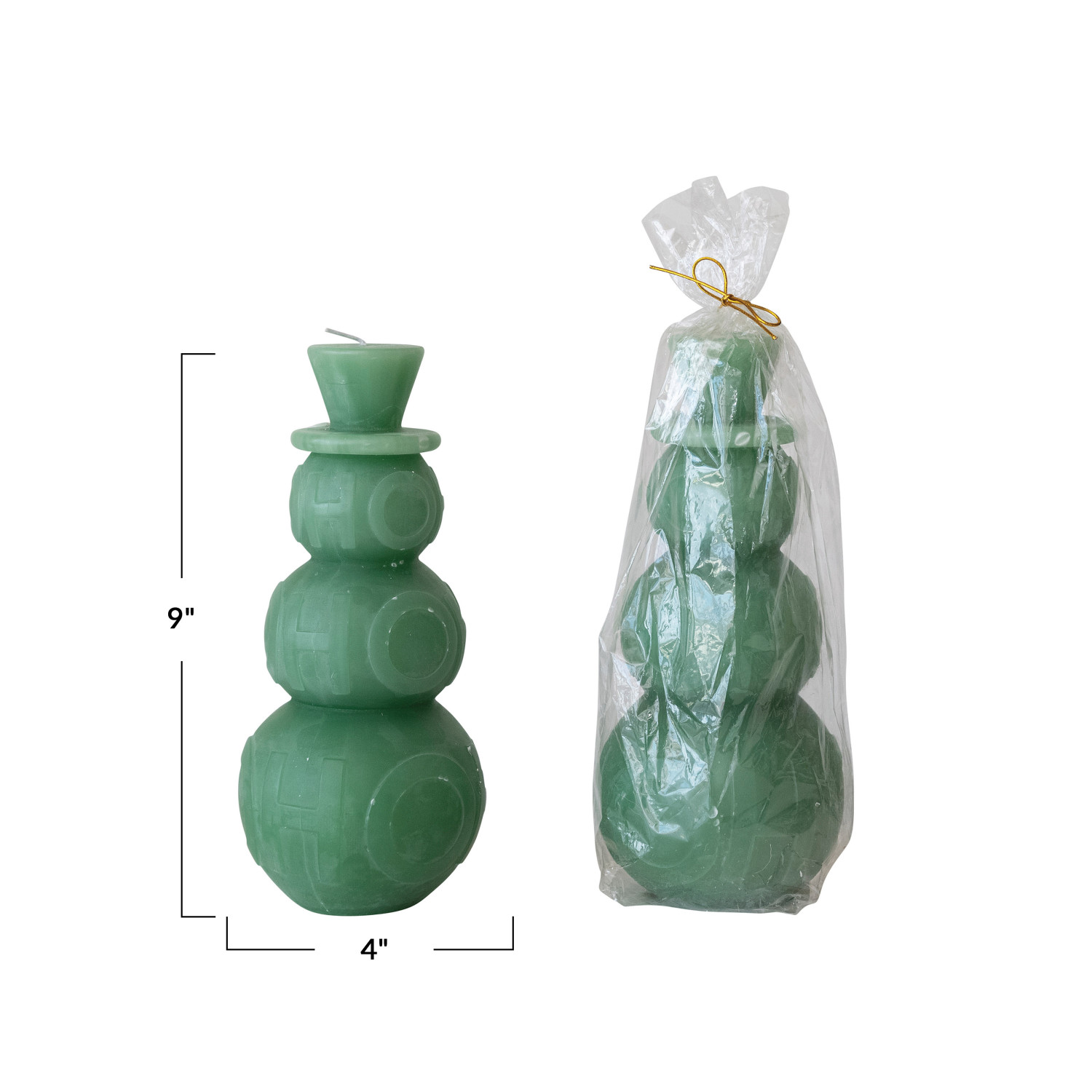 Unscented Snowman Shaped Pillar Candle "Ho Ho Ho", Green