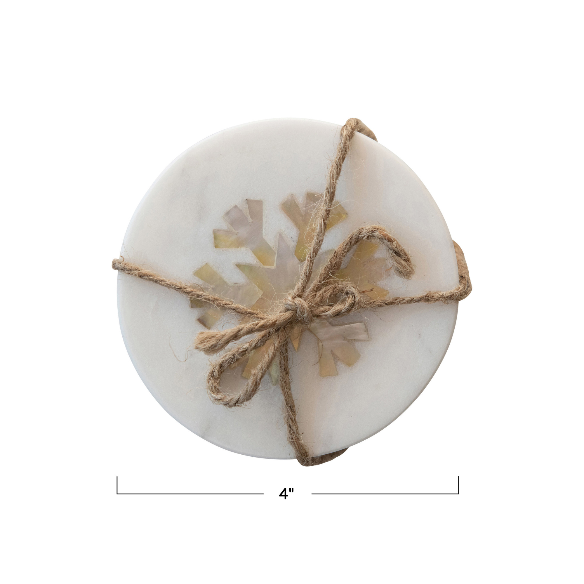 Catalog Name: 4" Round Marble Coasters w/ Mother of Pearl Snowflake Inlay, Set of 4