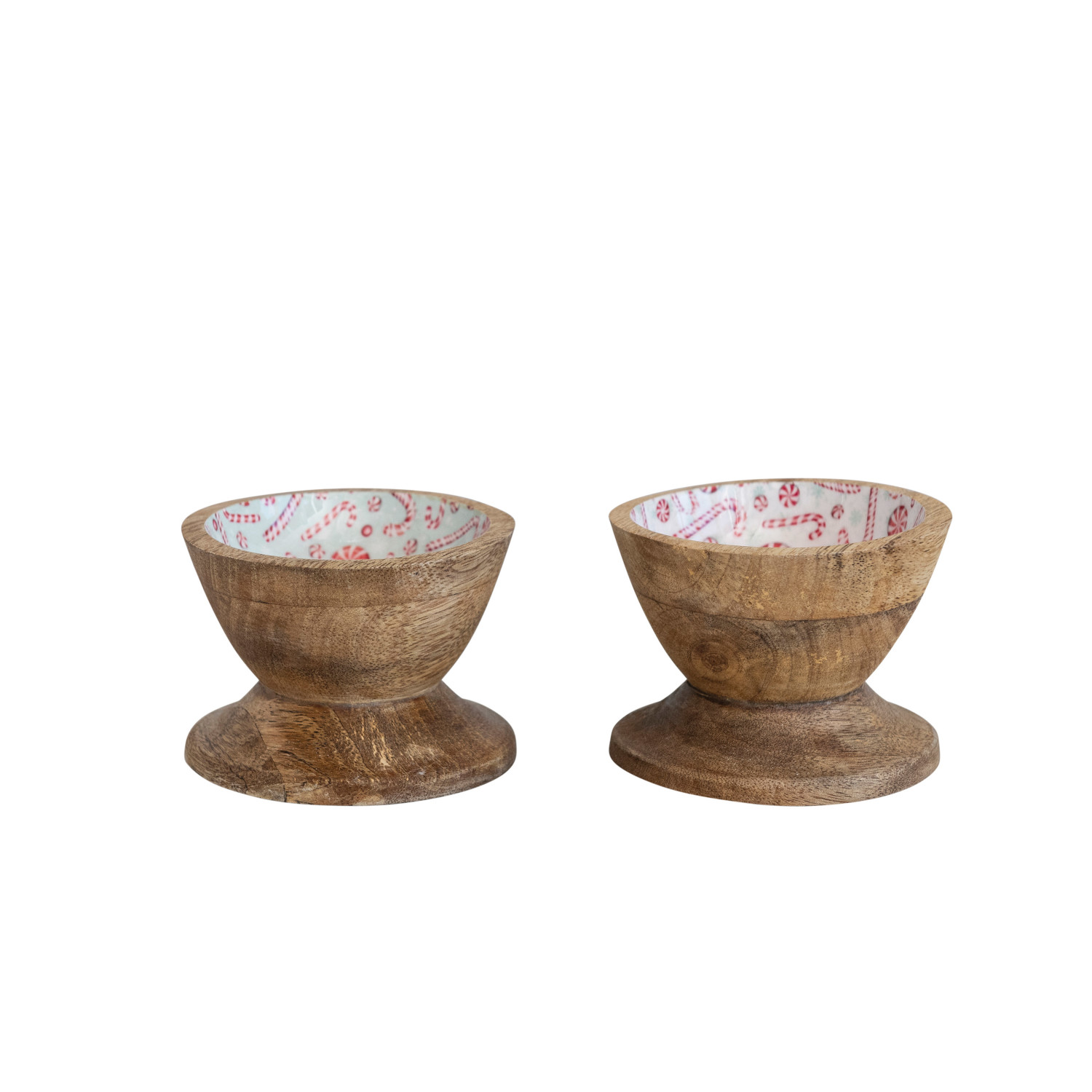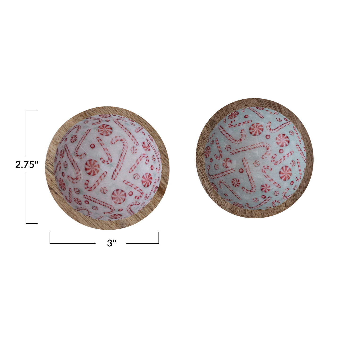 Catalog Name: 3" Round x 2-3/4"H Enameled Mango Wood Footed Bowl w/ Candy Canes/Peppermints, 2 Colors ©