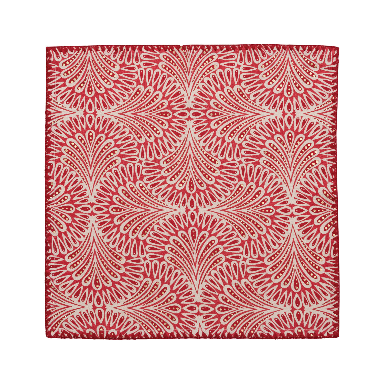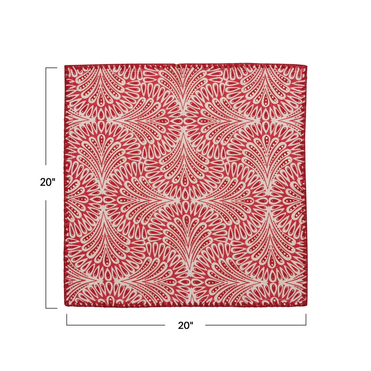 18" Square Cotton Printed Napkins w/ Pattern, Red, White & Gold Color, Set of 4