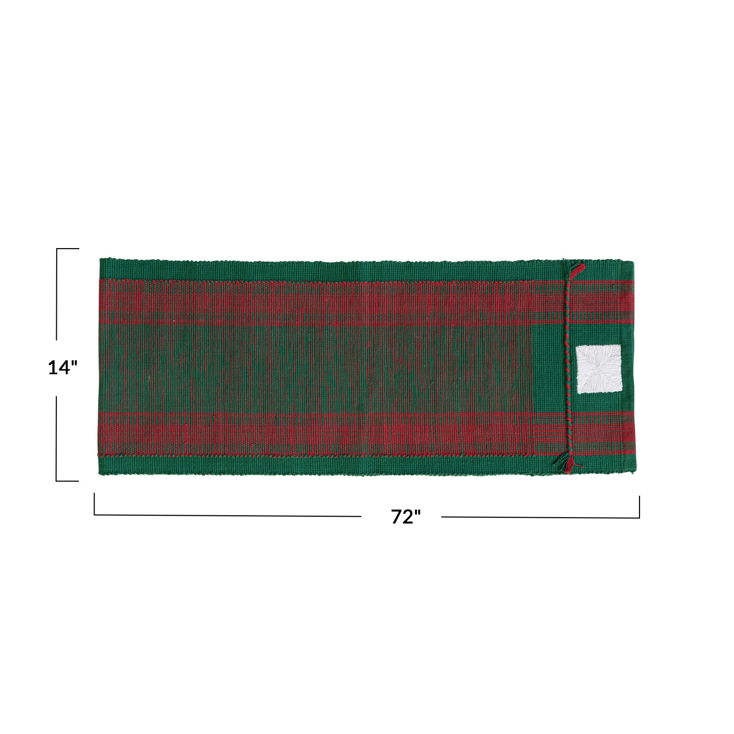 Add some warmth and charm to the dining table with this woven cotton table runner with stripes in green and red. This table runner is a festive and cozy piece that features a classic design of green and red stripes, creating a stunning and elegant display. The table runner is perfect for any occasion, whether it is a casual family meal, a festive holiday celebration, or a special event. The table runner is made of cotton, which makes it soft, smooth, durable, and easy to care for. The table runner measures 72 inches in length and 14 inches in width, making it a great fit for most tables. Transform any table into a stylish display with this versatile and functional table runner. A woven cotton table runner with a classic design of green and red stripes. A festive and cozy piece that can add some warmth and charm to the dining table. This table runner is perfect for any occasion, whether it is a casual family meal, a festive holiday celebration, or a special event.