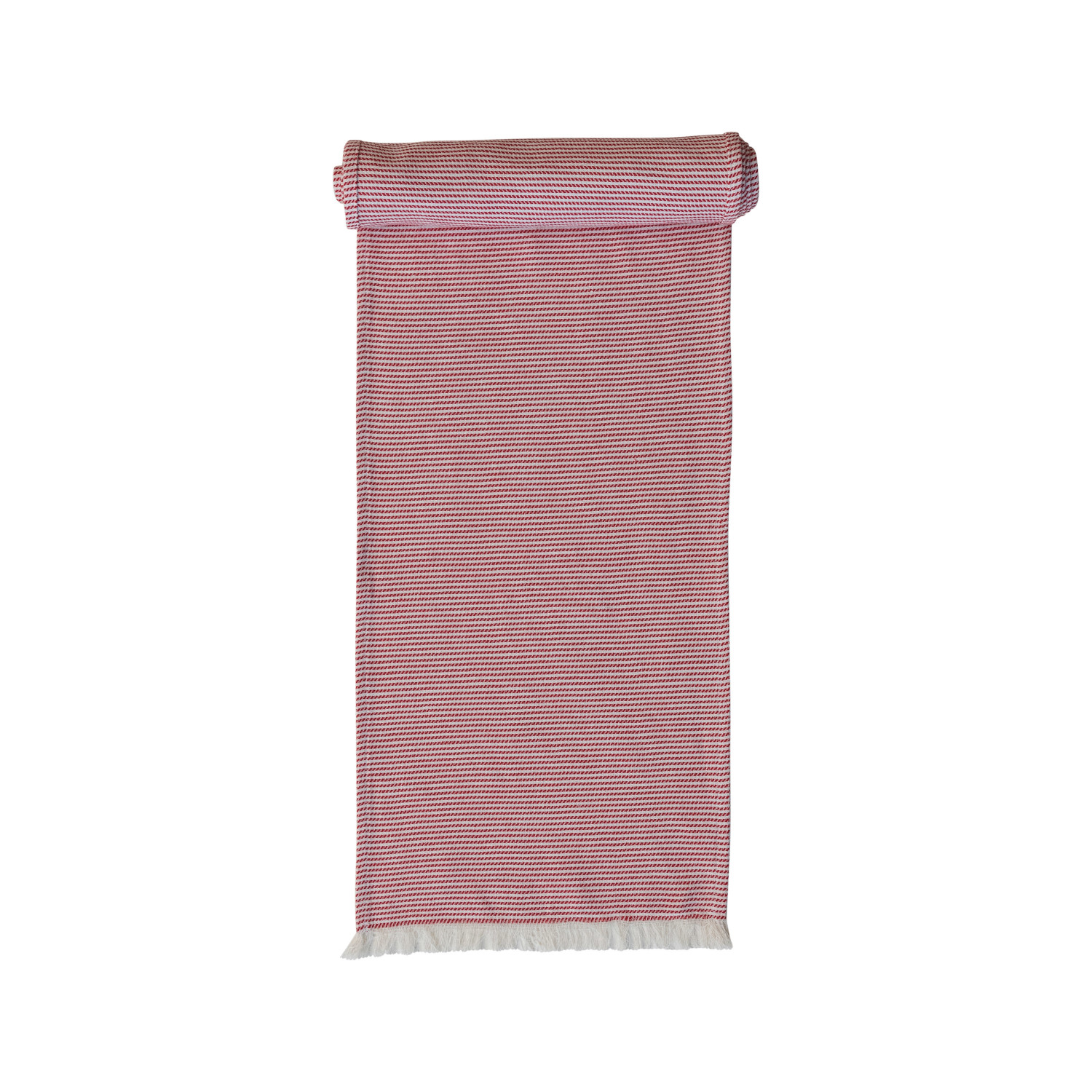 Add some flair and movement to the table with this woven cotton table runner with stripes and fringe in red and white. This table runner is a simple and stylish piece that features a classic red and white stripe pattern and a fringe that adds some character and fun to any space. The table runner is ideal for any season, whether it is a spring brunch, a summer barbecue, a fall harvest, or a winter holiday. The table runner is made of cotton, which makes it soft, smooth, durable, and easy to care for. The table runner measures 108 inches in length and 14 inches in width, making it a great fit for most tables. Transform any table into a stylish display with this versatile and functional table runner. A woven cotton table runner with a classic red and white stripe pattern and a fringe that adds some flair and movement. A simple and stylish piece that can match any table setting, from farmhouse to contemporary, casual to formal. This table runner is perfect for any occasion, whether it is a casual family meal, a festive holiday celebration, or a special event.