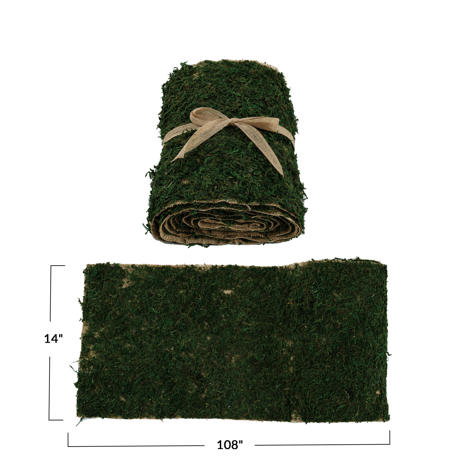 Catalog Name: 108"L x 14"W Moss & Burlap Table Runner, Natural