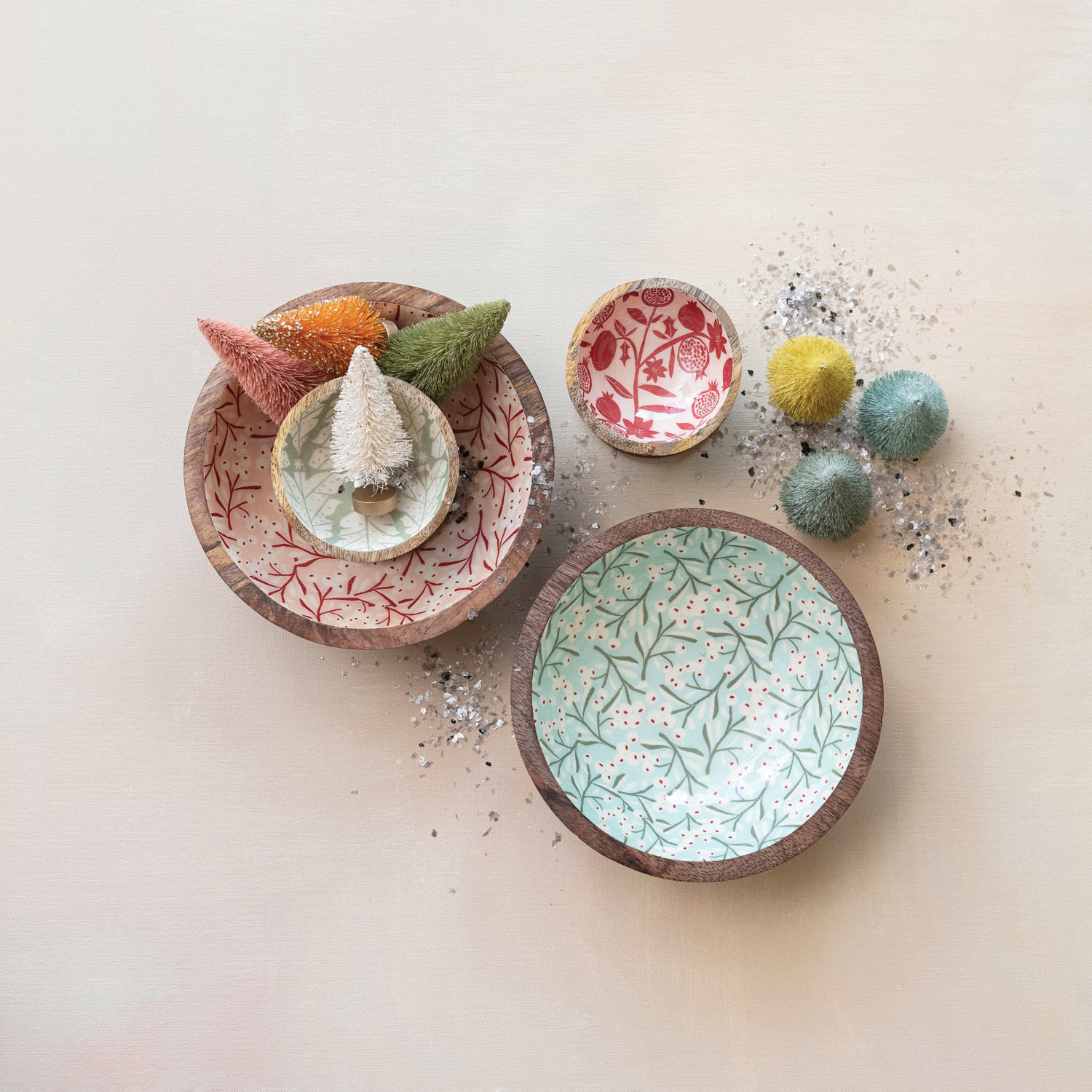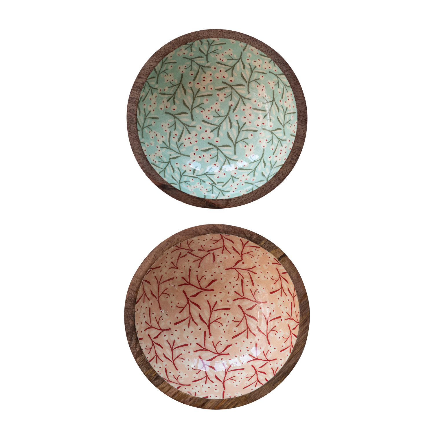 Enameled Mango Wood Bowl w/ Berry Pattern, 2 Colors ©
