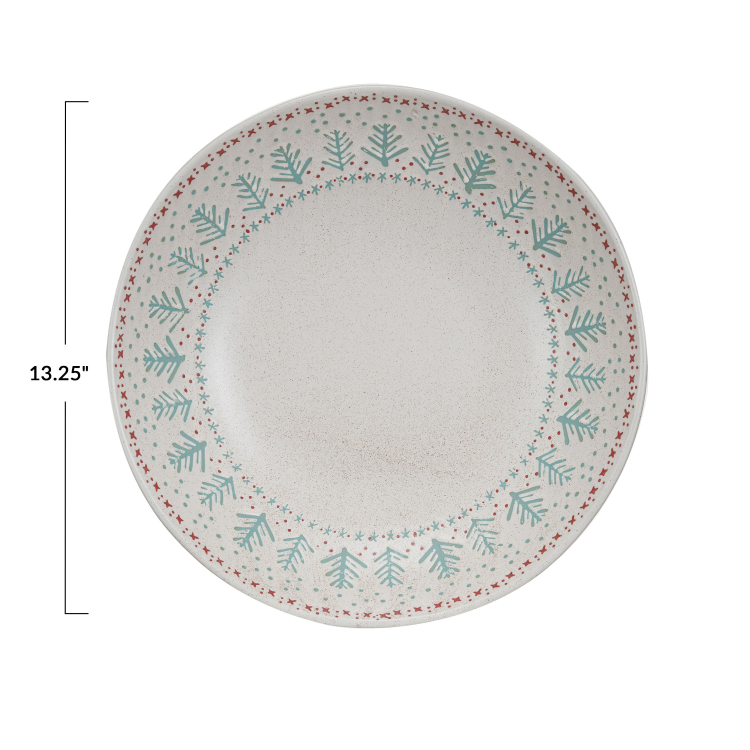 Catalog Name: 13-3/4" Round x 3"H Hand-Stamped Stoneware Serving Bowl w/ Wax Relief Tree Pattern, Multi Color