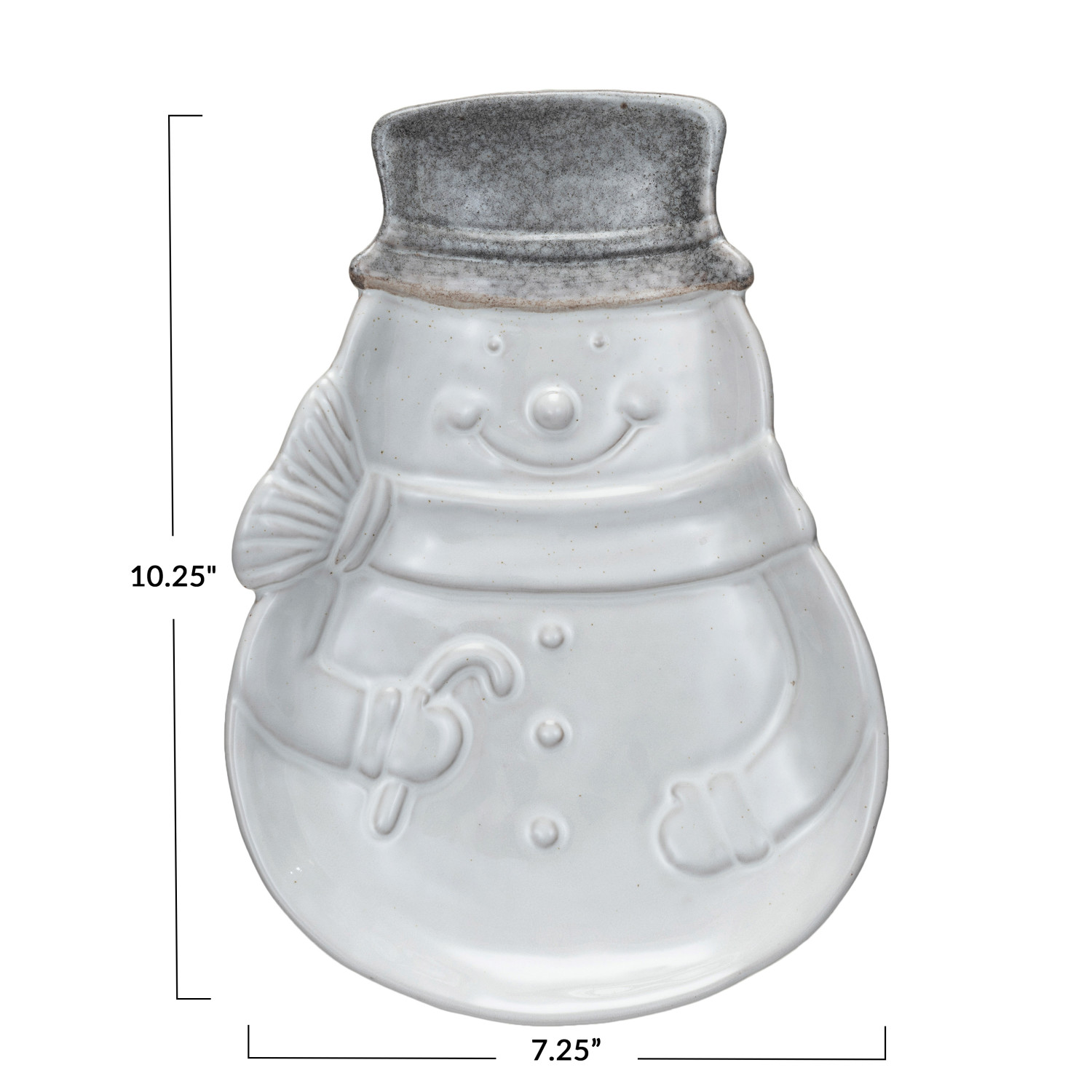 Catalog Name: 10-1/4"L x 7-1/4"W Stoneware Snowman Shaped Plate, Reactive Glaze, Antique White (Each One Will Vary)