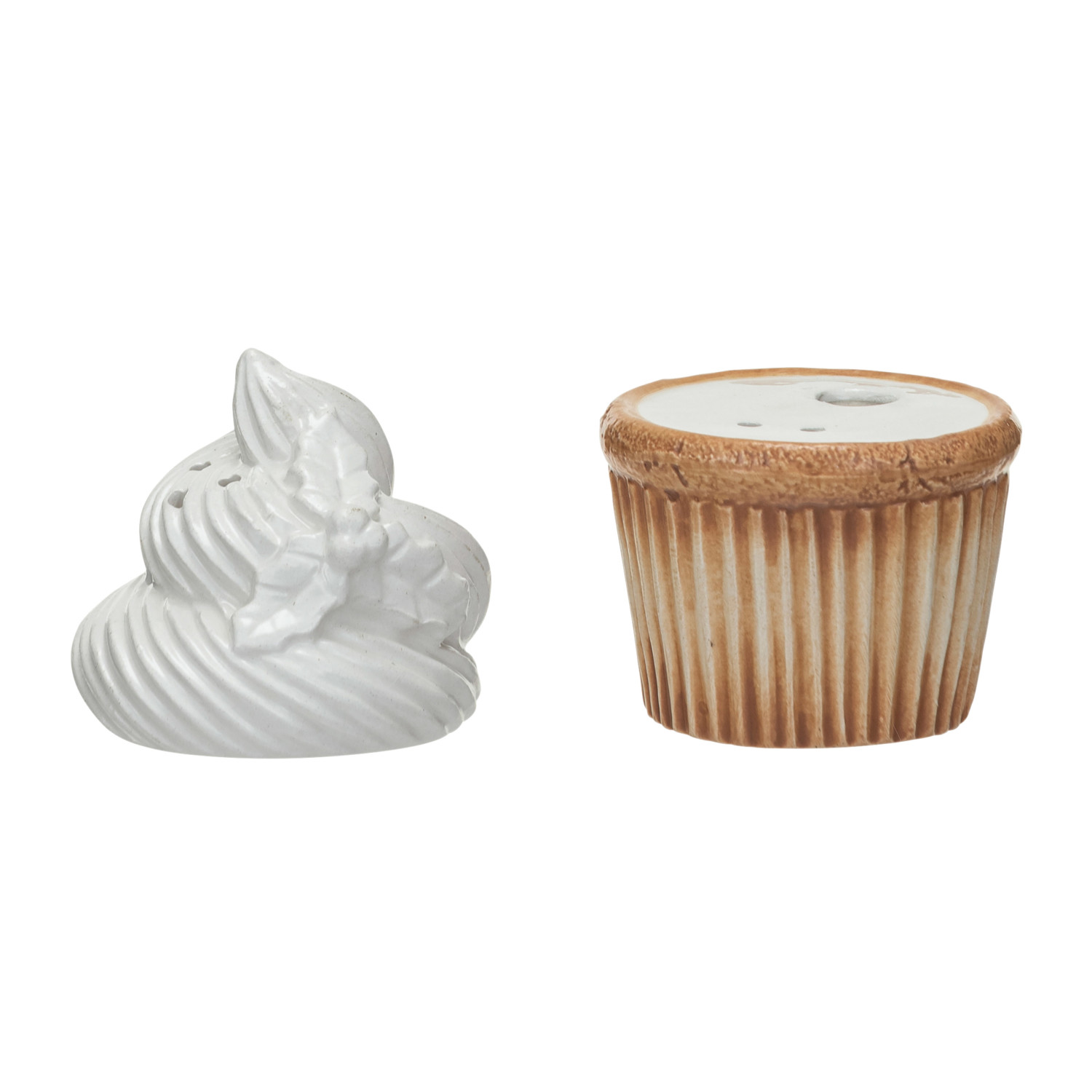 Ceramic Cupcake Shaped Salt & Pepper Shakers w/ Embossed Holly, Set of 2