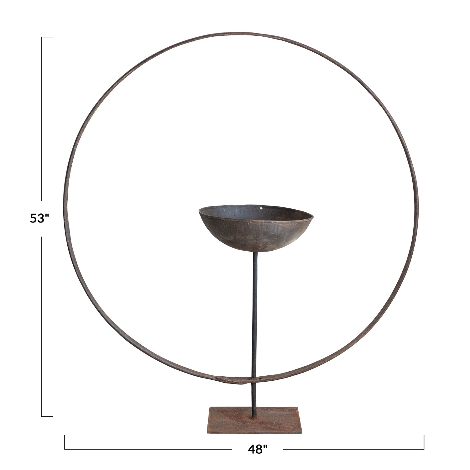Attract a variety of feathered friends to the backyard with this stylish and functional metal ring bird feeder on stand. This bird feeder features a large-capacity feeder ring that can hold a significant amount of birdseed, ensuring that the feathered guests stay well-fed. The rust-colored finish adds a classic and aged look that complements any outdoor space, while the sturdy metal construction ensures long-lasting durability and weather resistance. The easy-to-fill and clean feeder ring allows for convenient bird feeding enjoyment. Measuring 48 inches long, 16 inches wide, and 53 inches high, this bird feeder on stand provides ample feeding space for birds of all sizes. A stylish and functional metal bird feeder stand with a large capacity feeder ring for attracting a variety of birds. Features a rust-colored finish for a classic and aged look that complements any outdoor space. The easy-to-fill and clean feeder ring allows for convenient bird feeding enjoyment.