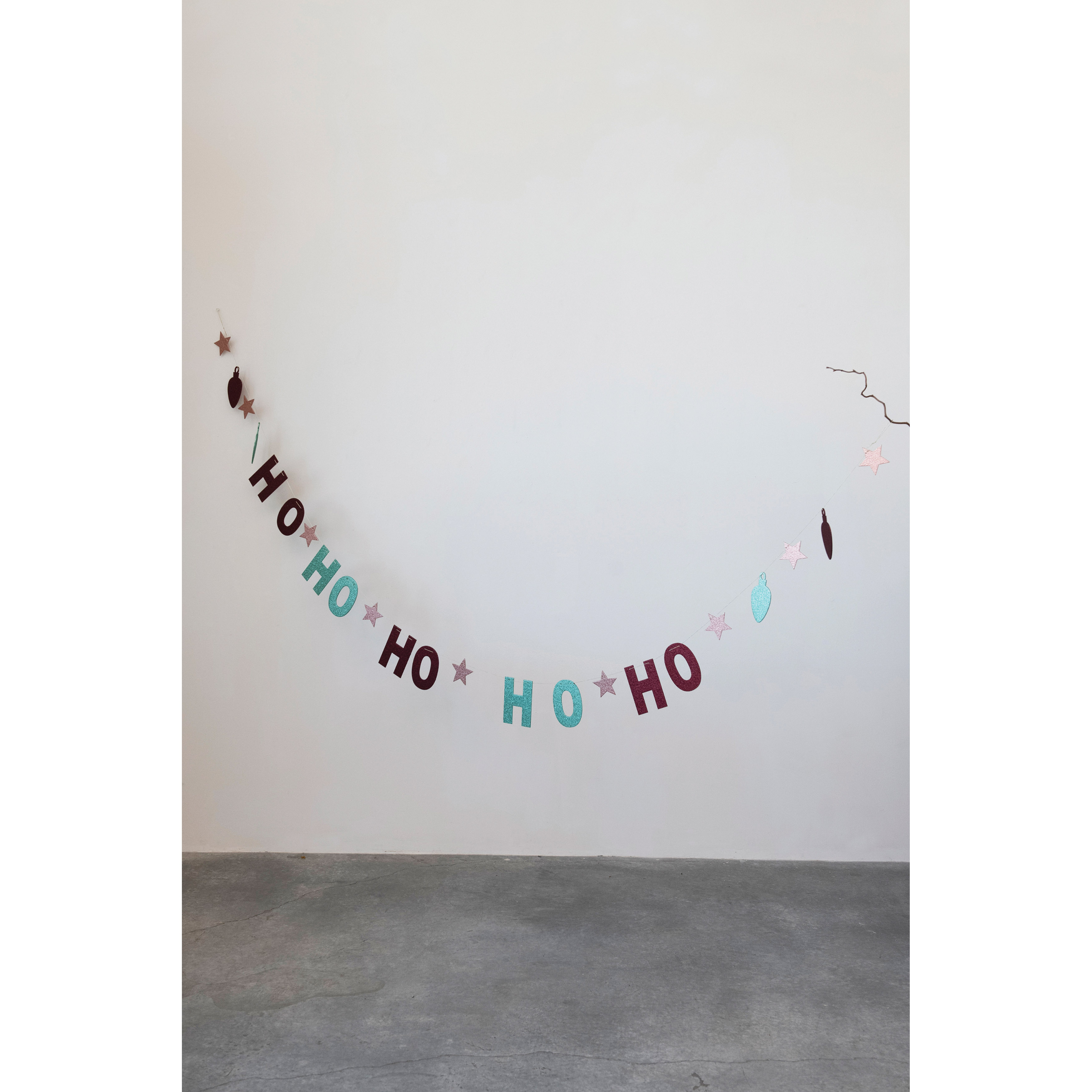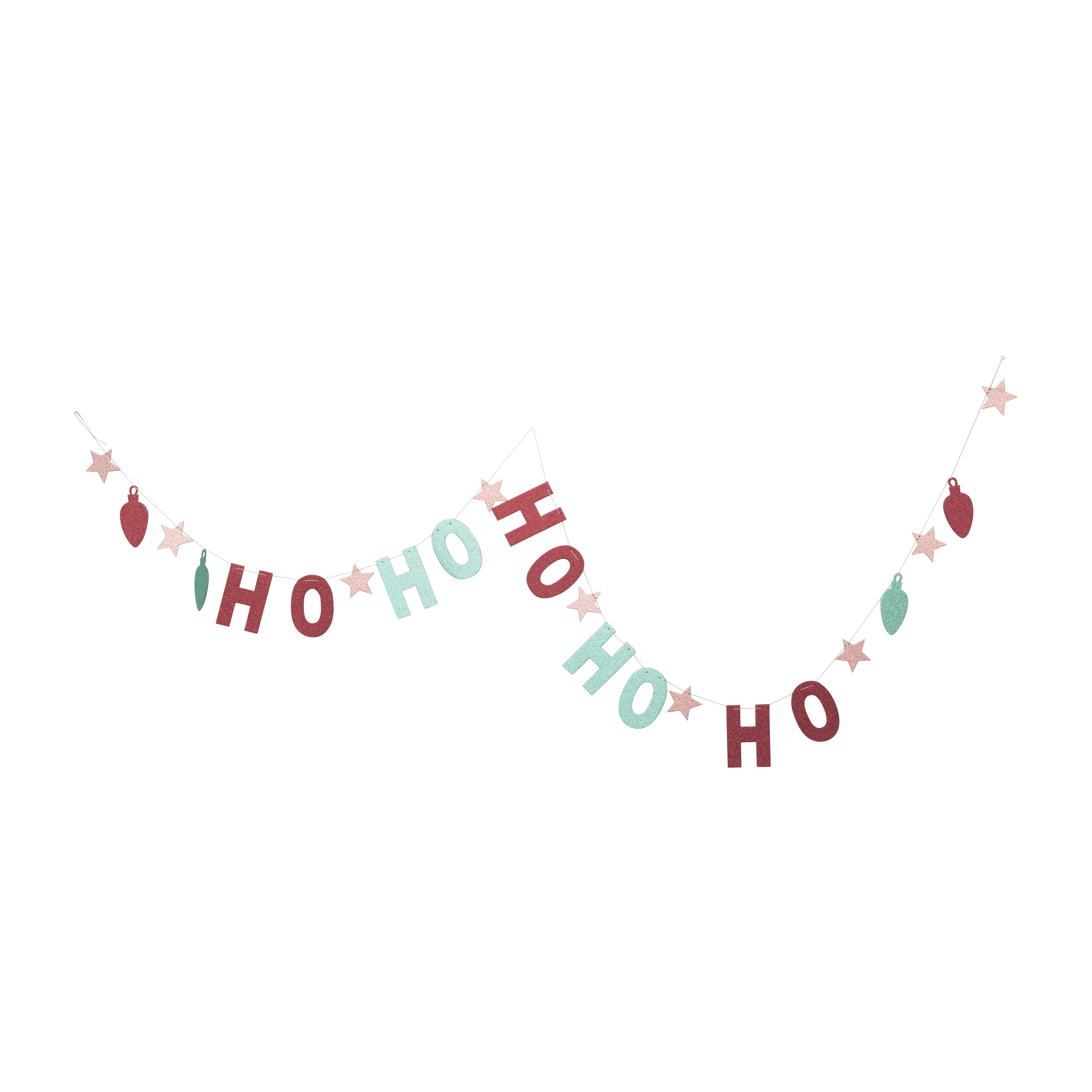 118"L MDF Banner in Kraft Box with Stars and Glitter "Ho Ho Ho", Multi Color