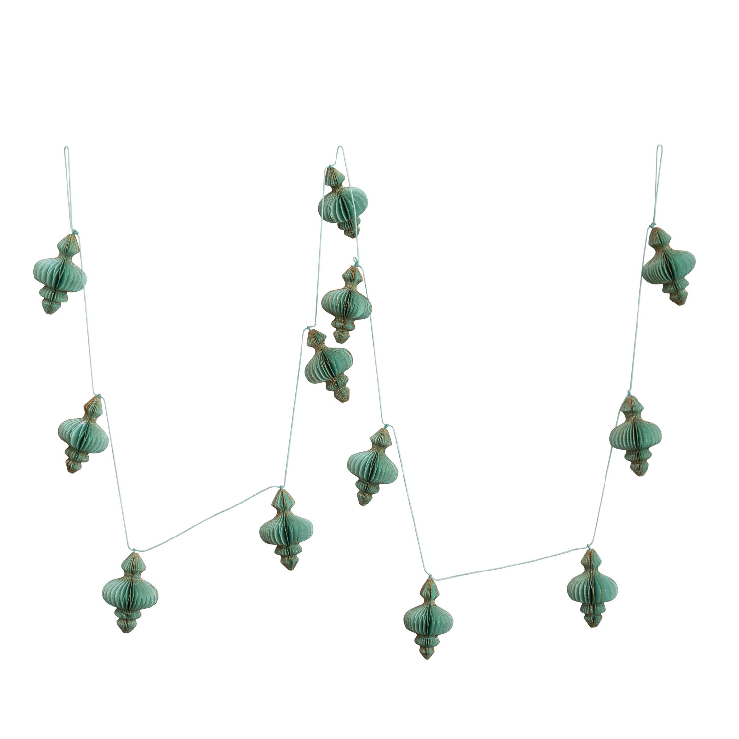 Catalog Name: 72"L Handmade Recycled Paper Honeycomb Finial Garland w/ Gold Glitter, Turquoise Color