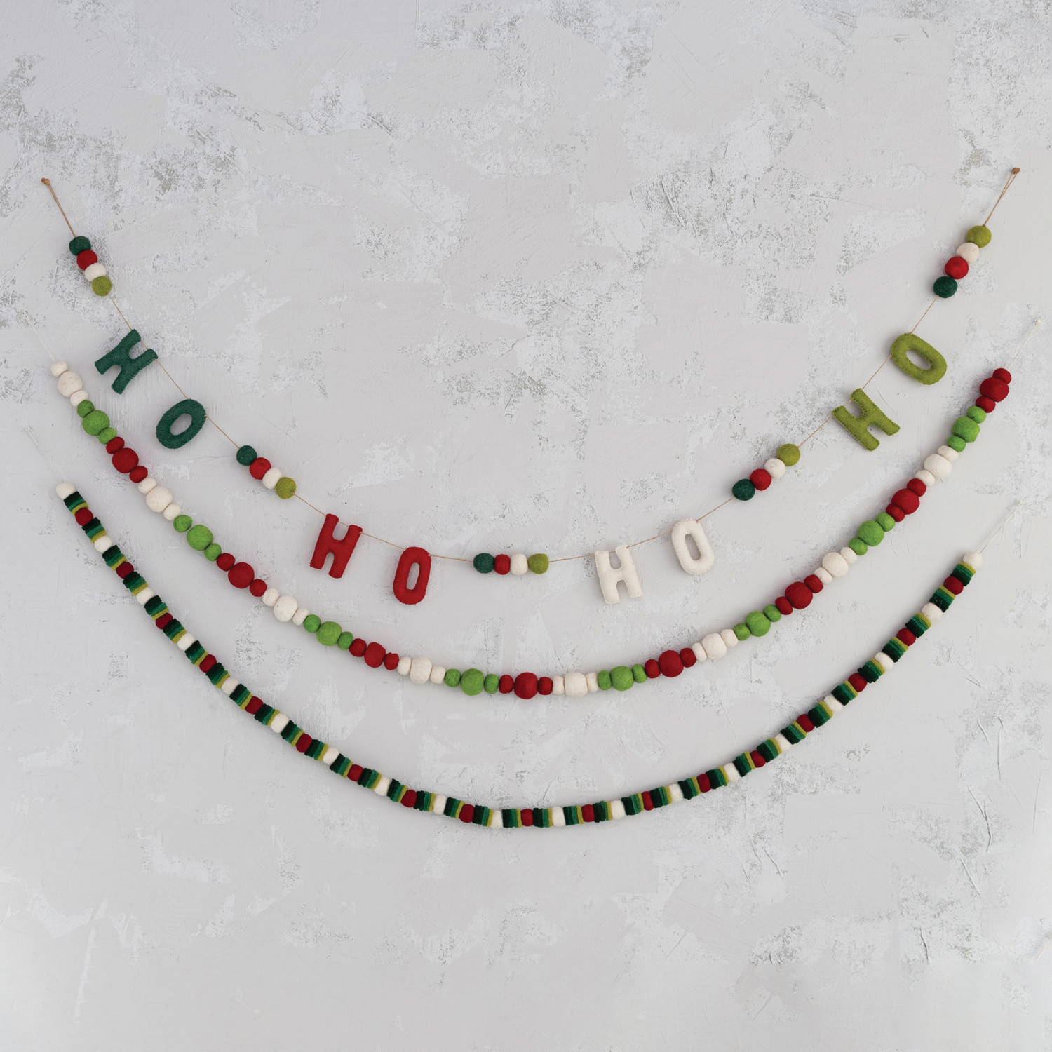72"L Handmade Wool Felt Ball Garland, Red, Green & Cream Color