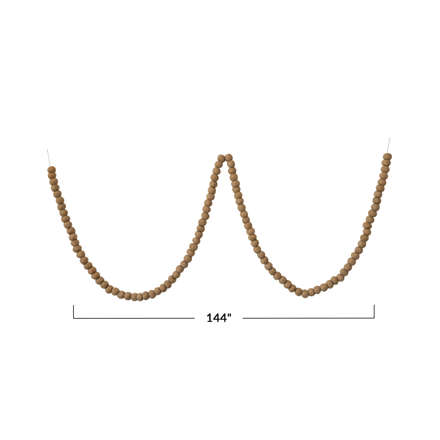 Catalog Name: 144"L x 1-1/2"H Handmade Wool Felt Ball Garland in Printed Drawstring Bag, Oatmeal Color