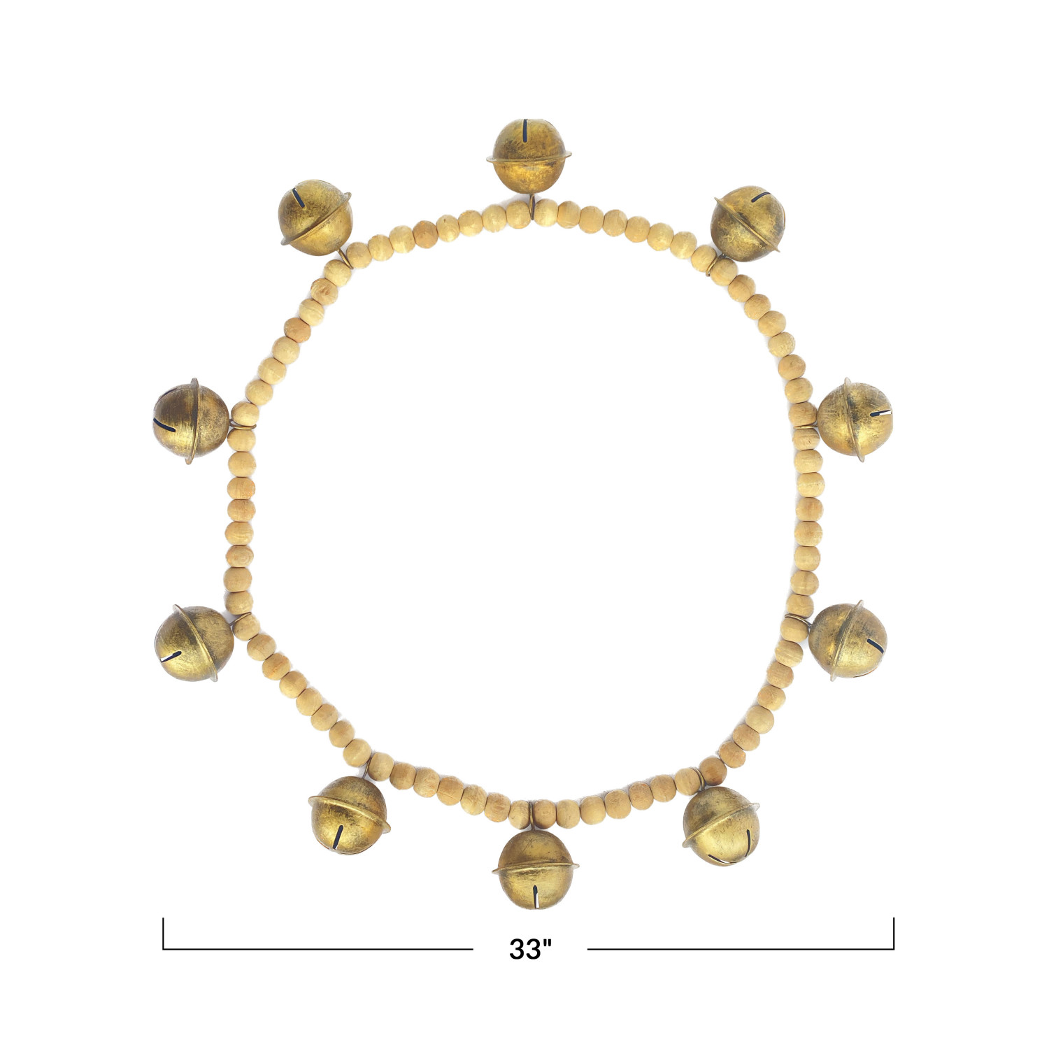 Catalog Name: 33"L x 3"H Wood Bead & Metal Bell Garland, Natural & Antique Gold Finish