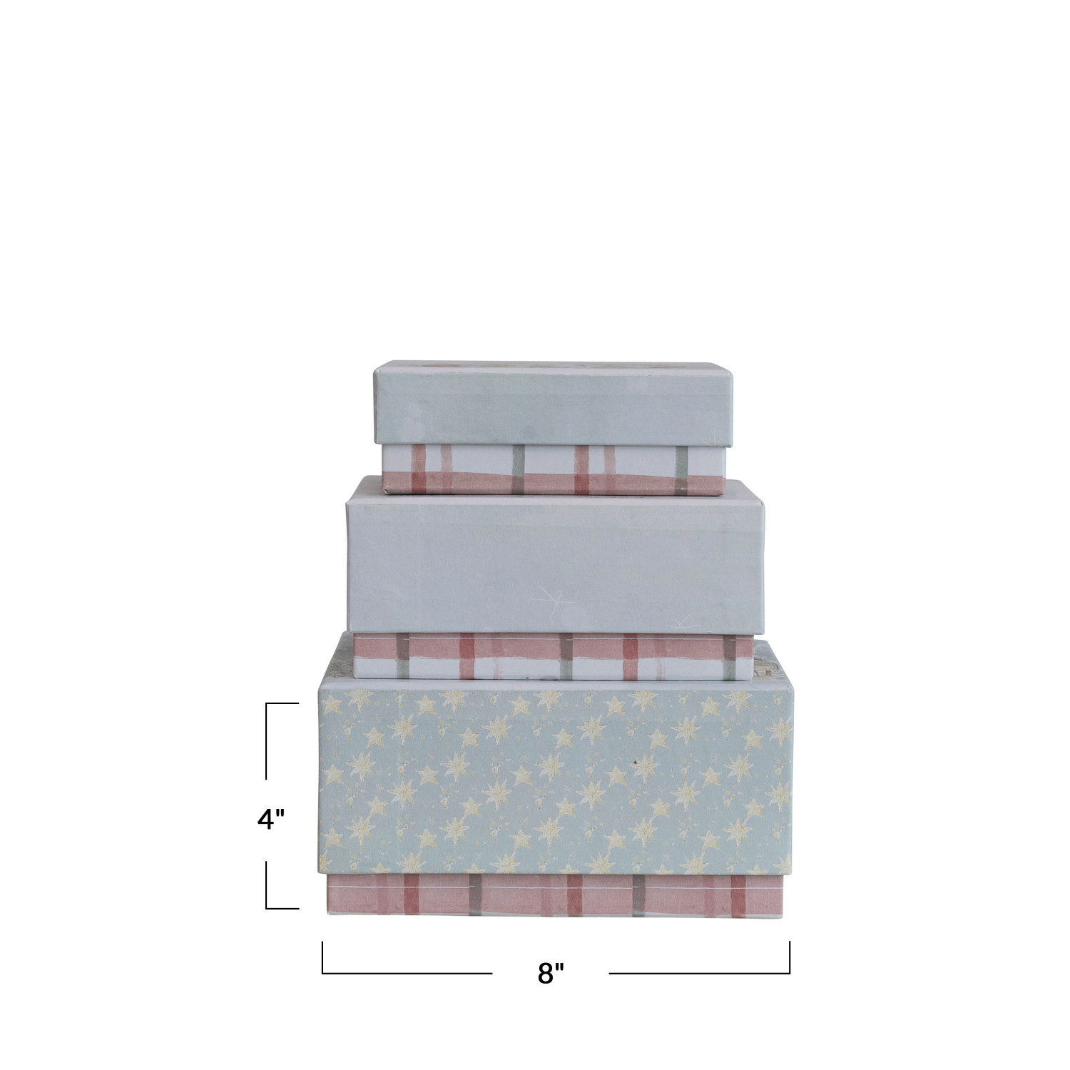 Catalog Name: 8"L x 6"W x 4"H, 7"L x 5"W x 3"H & 6"L x 4"W x 2"H Printed Recycled Paper Gift Box, Multi Color, Set of 3 ©