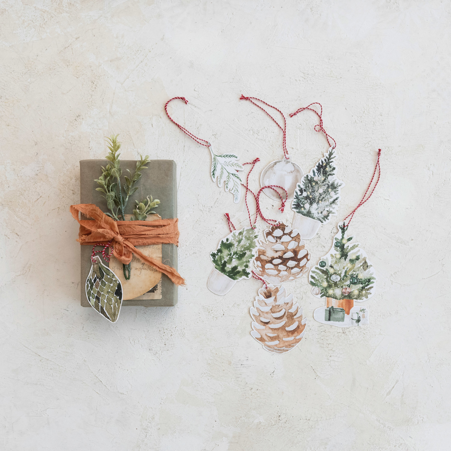 Printed Recycled Paper Trees & Botanicals Gift Tags/Ornaments, Set of 8