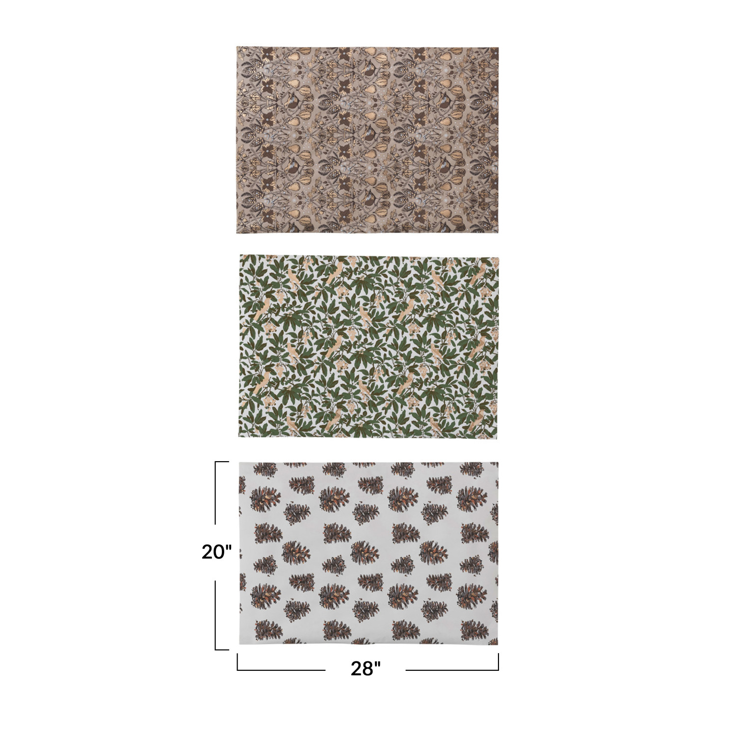 Catalog Name: 28"L x 20"W Handmade Printed Recycled Wrapping Paper Sheets w/ Patterns, Multi Color, 3 Styles, Set of 12 Rolls in Kraft Display Box (3 Sheets Per Roll, 4 Rolls Per Style)