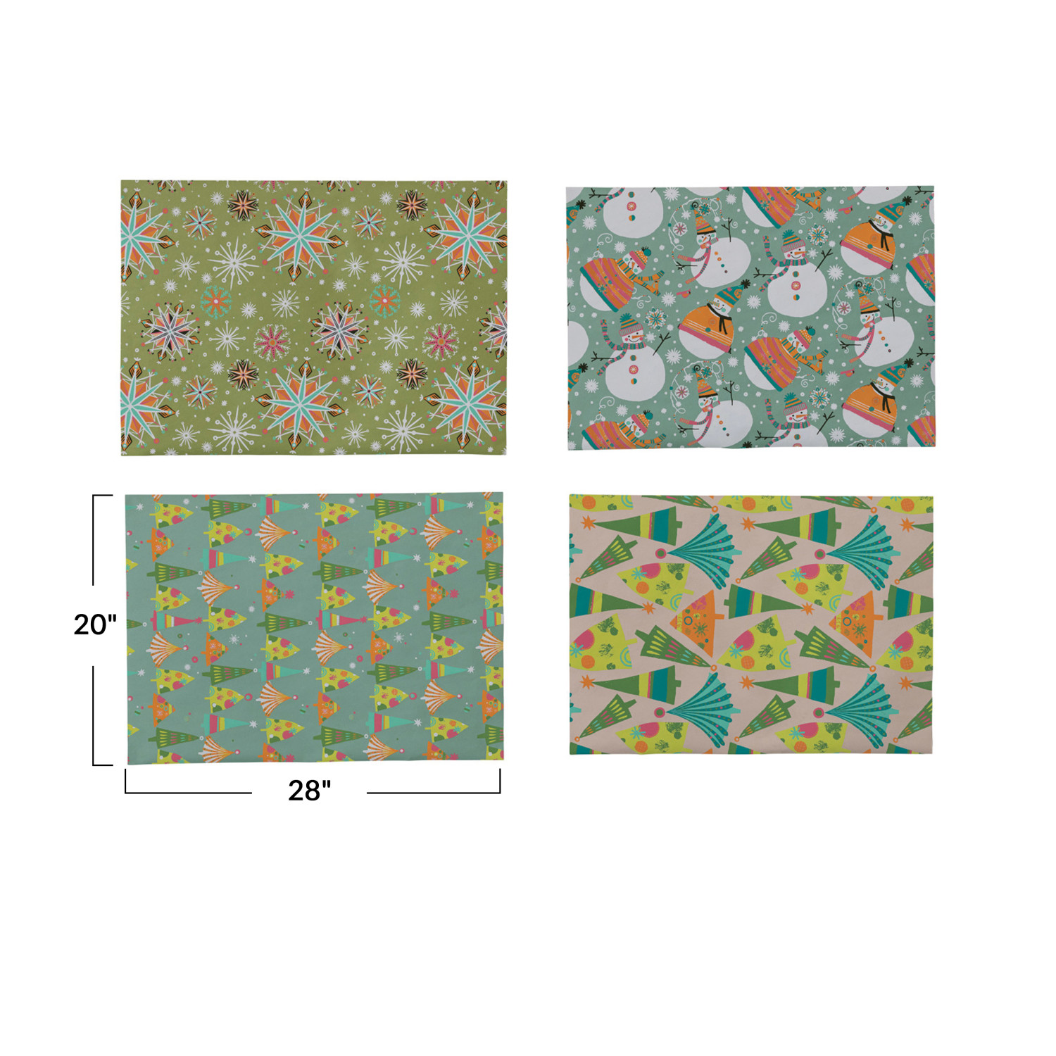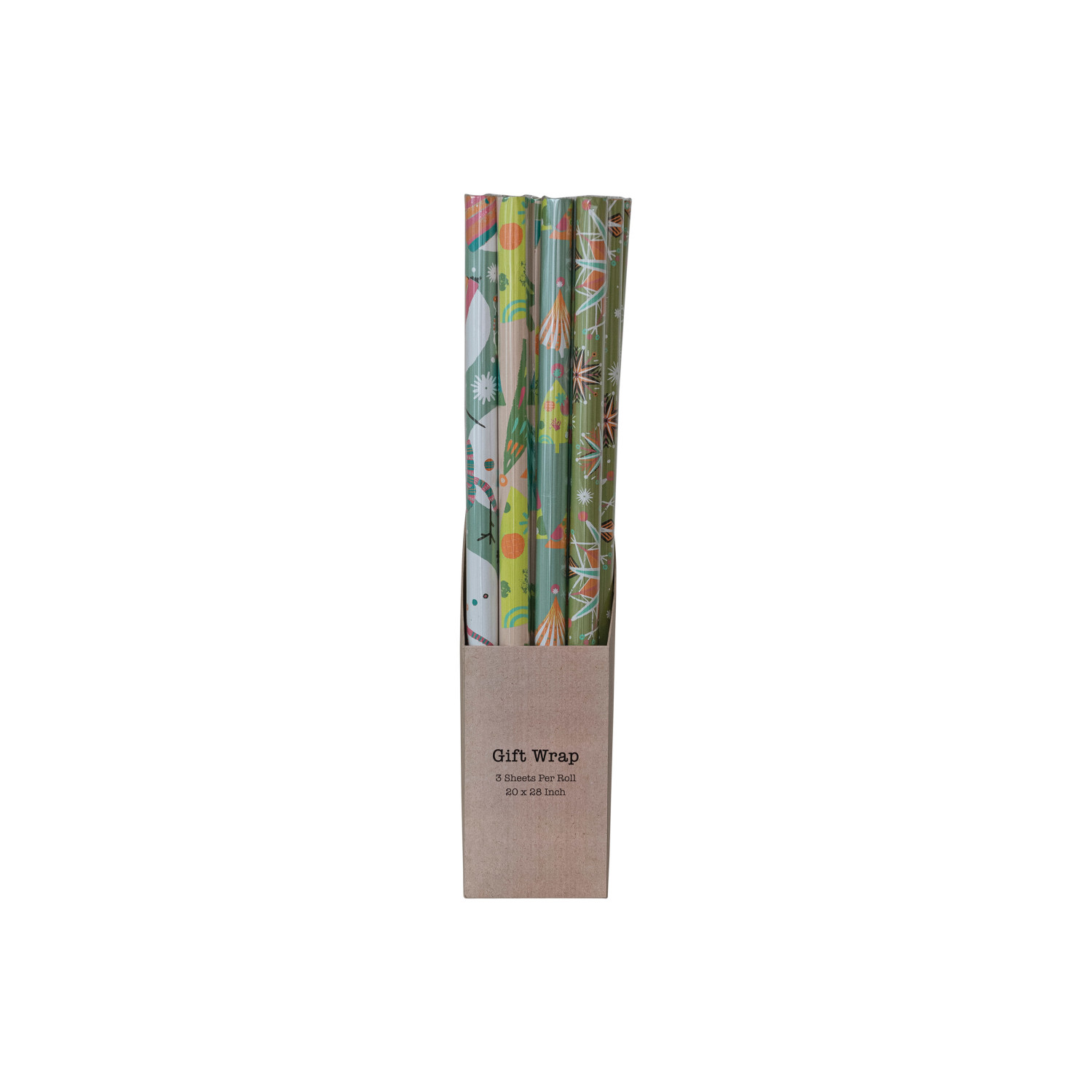 This collection of 12 sheets of wrapping paper is a holiday essential, featuring four vibrant styles in a multicolor scheme, with three rolls per style, totaling 12 rolls per set, all neatly presented in a kraft display box. Each roll comes with 3 sheets per roll, The ensemble offers a delightful mix of traditional and whimsical holiday patterns, ensuring the gifts stand out under the tree. Crafted from high-quality paper, these sheets measure 28 inches in length and 20 inches in width, providing generous coverage for gifts both large and small. Celebrate the season with a touch of style and a burst of color with each carefully wrapped present. A festive array of holiday patterns adorns these wrapping sheets, infusing joy into every gift. A versatile choice for any seasonal celebration, these papers pair beautifully with shimmering bows or rustic jute strings. Ideal for wrapping presents, holiday crafts, or festive table settings, these papers bring the spirit of the season to any occasion.