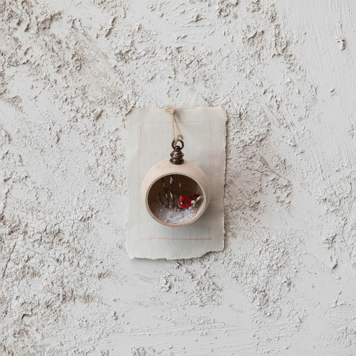 Wood Diorama Ornament w/ Cardinal, Multi Color