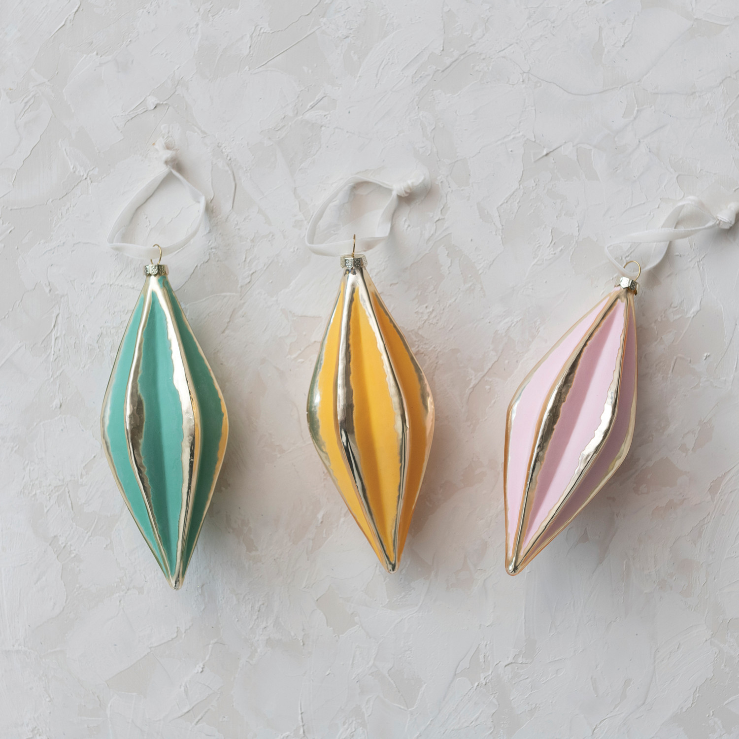 7"H Hand-Painted Glass Pleated Ornament w/ Gold Electroplating, 3 Colors