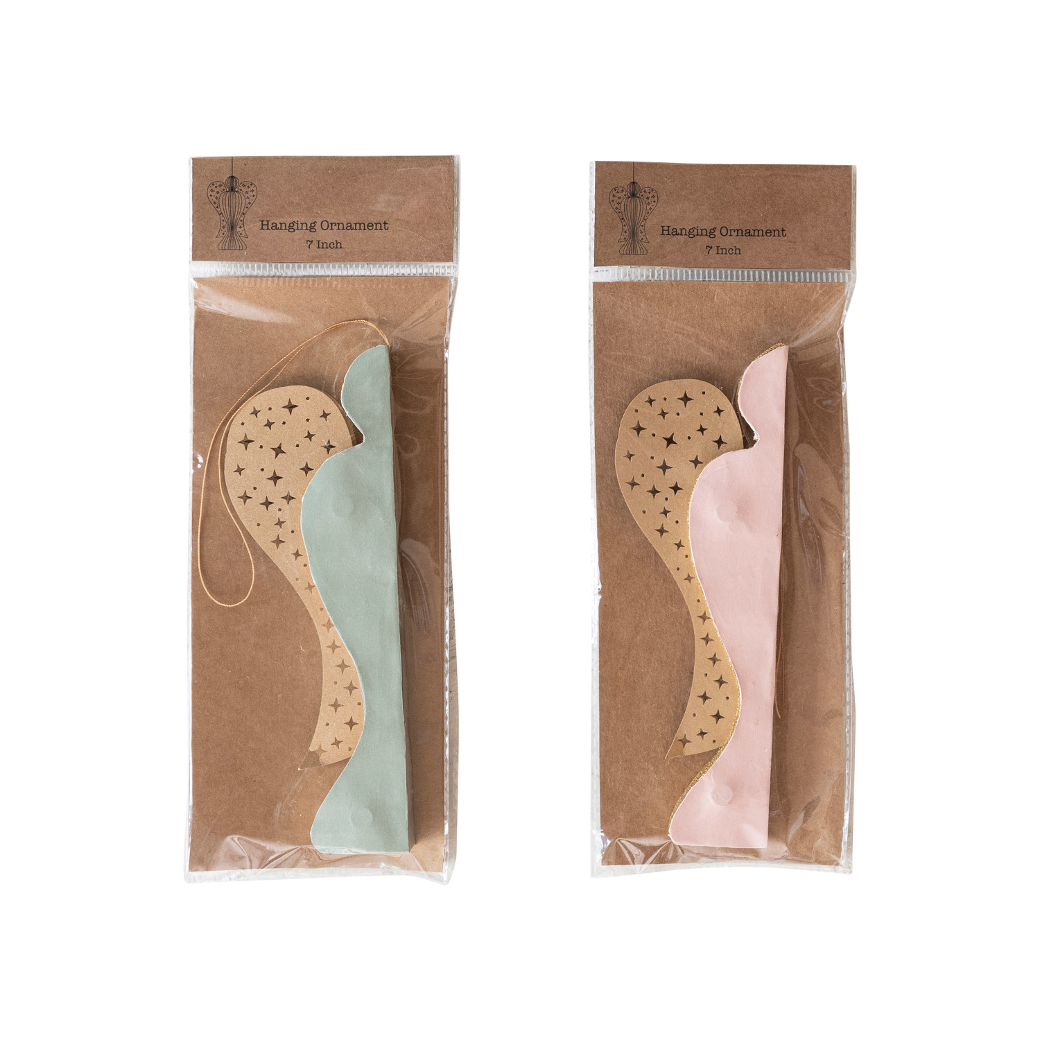 Catalog Name: 7"H Recycled Paper Folding Honeycomb Angel Ornament w/ Star Cut-Outs & Gold Glitter, 2 Colors