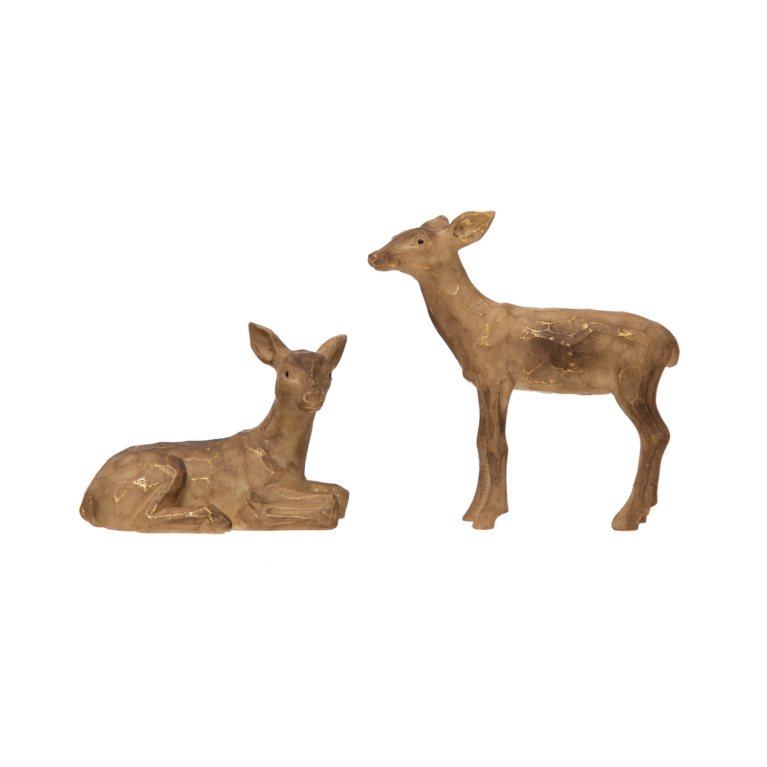 2-1/2"H - 4-1/4"H Resin Deer with Gold Accents, Brown, 2 Styles