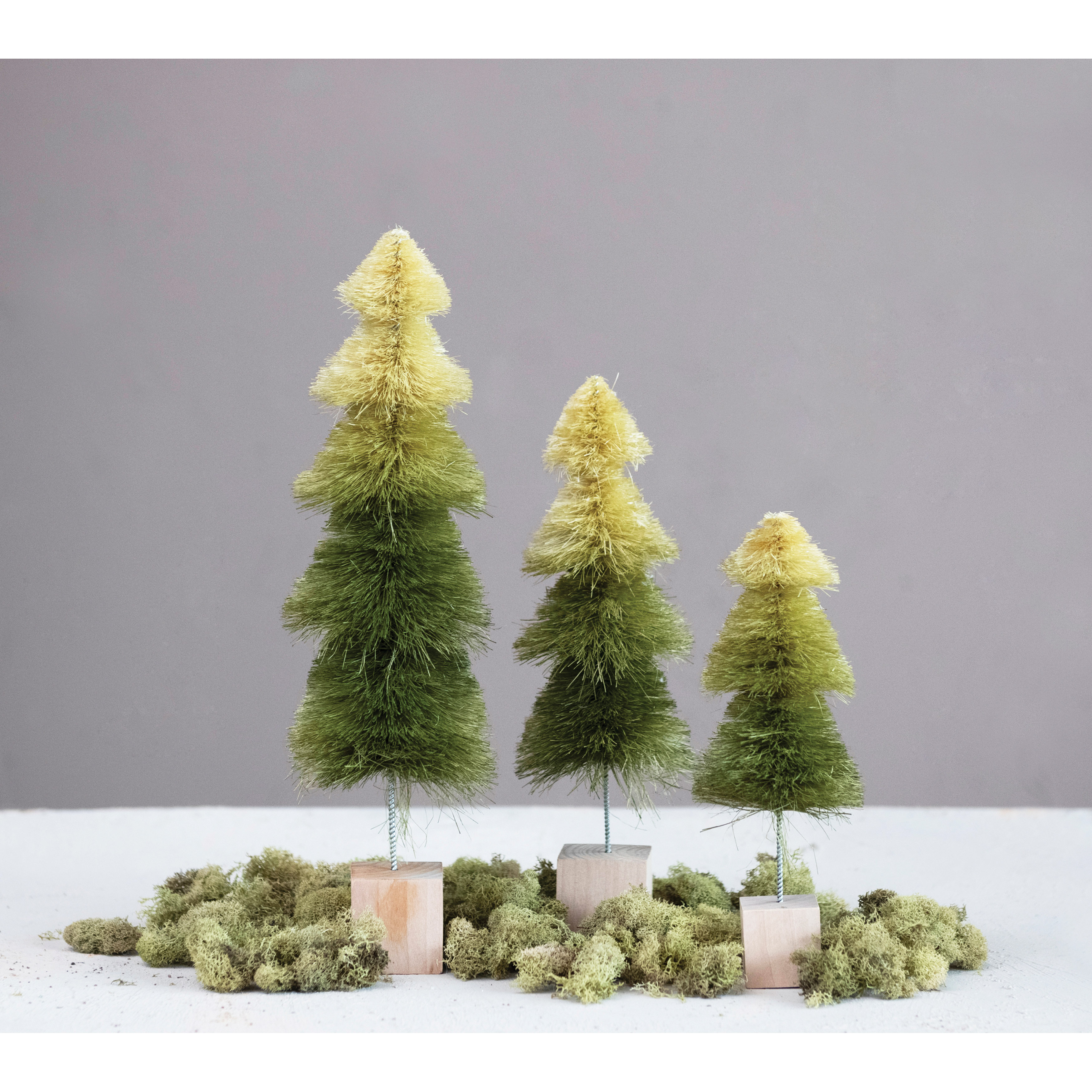 Catalog Name: 4-1/2" Round x 15"H Sisal Bottle Brush Tree with Wood Base, Green Ombre