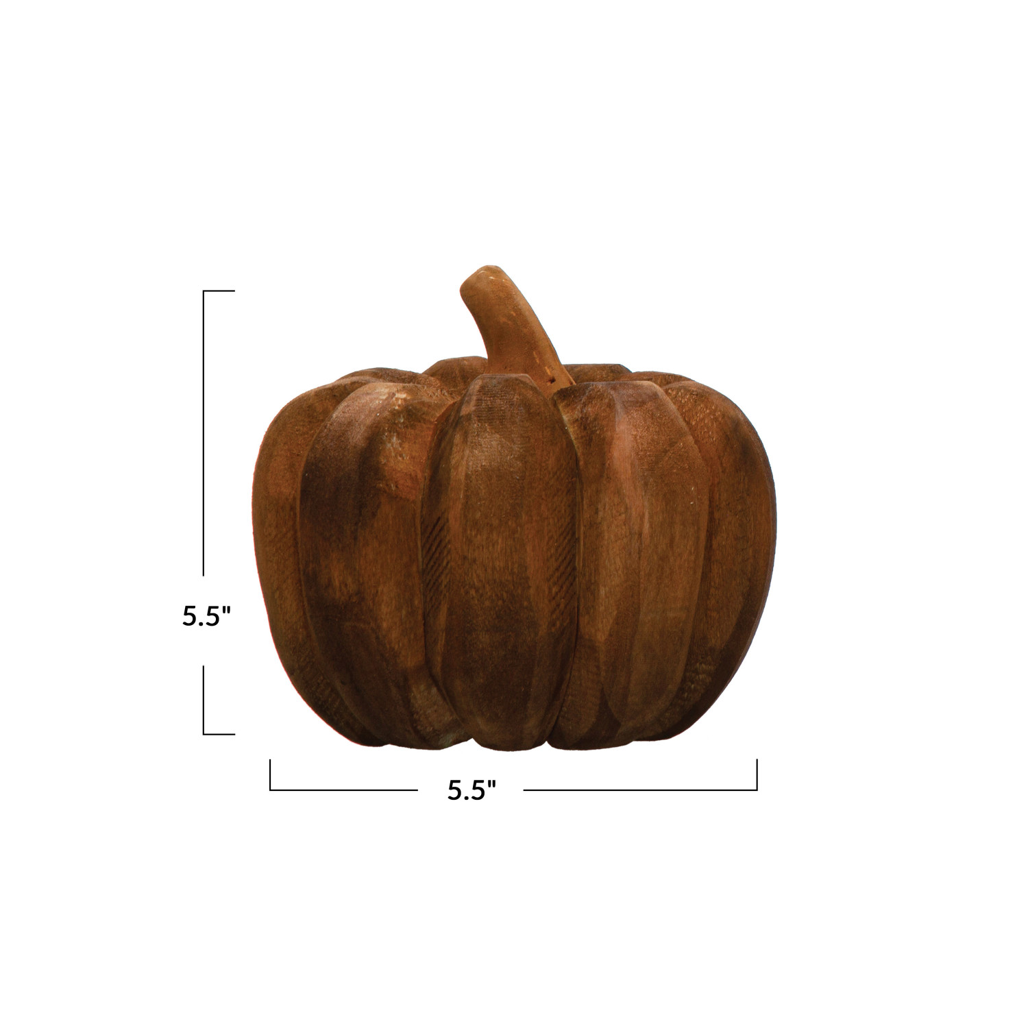Catalog Name: 5-1/2" Round x 5-1/2"H Hand-Carved Poplar Wood Pumpkin, Orange Color (Each One Will Vary)