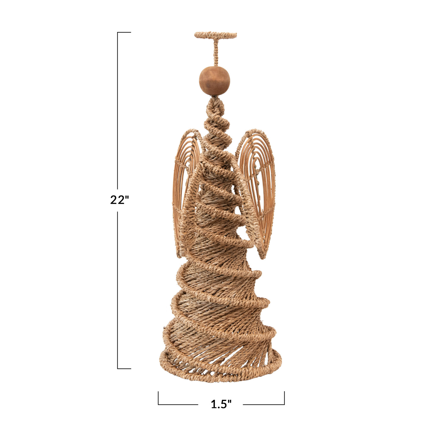 This festive angel is a beautiful way to decorate for the holiday season. Made with bankuan rope, this hand-woven angel has a spiral cone shape with a natural finish. This decoration instantly elevates any table tops or shelves, and blends in with any decor styles.