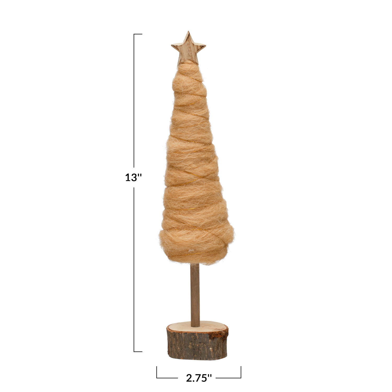 Catalog Name: 2-3/4" Round x 13"H Wool Tree w/ Star & Wood Slice Base, Camel Color