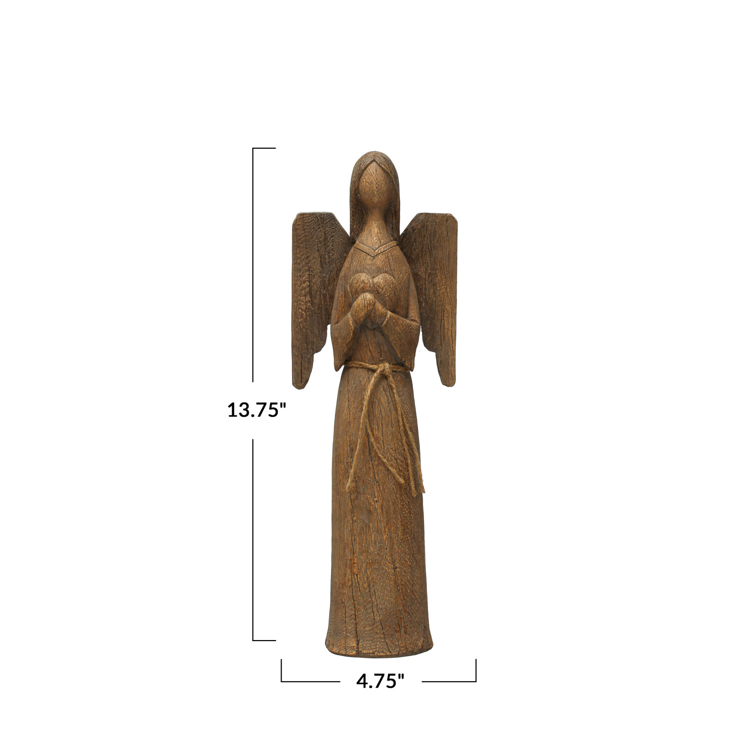 Catalog Name: 4-3/4"L x 3"W x 13-3/4"H Resin Angel w/ Heart, Wood Finish