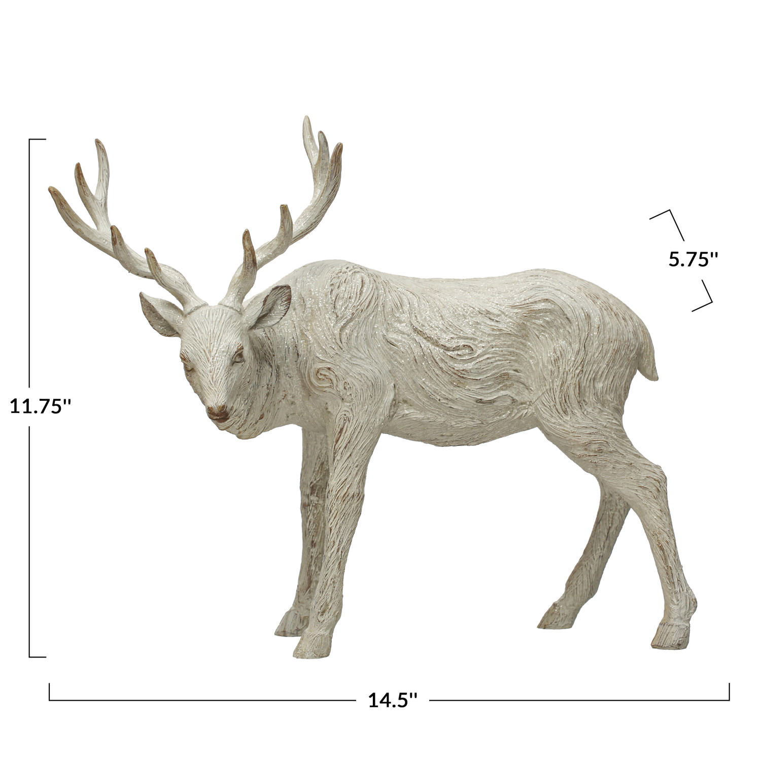 14-1/4"L x 5-3/4"W x 11-3/4"H Resin Standing Deer, Whitewashed Wood Finish, Truck Ship